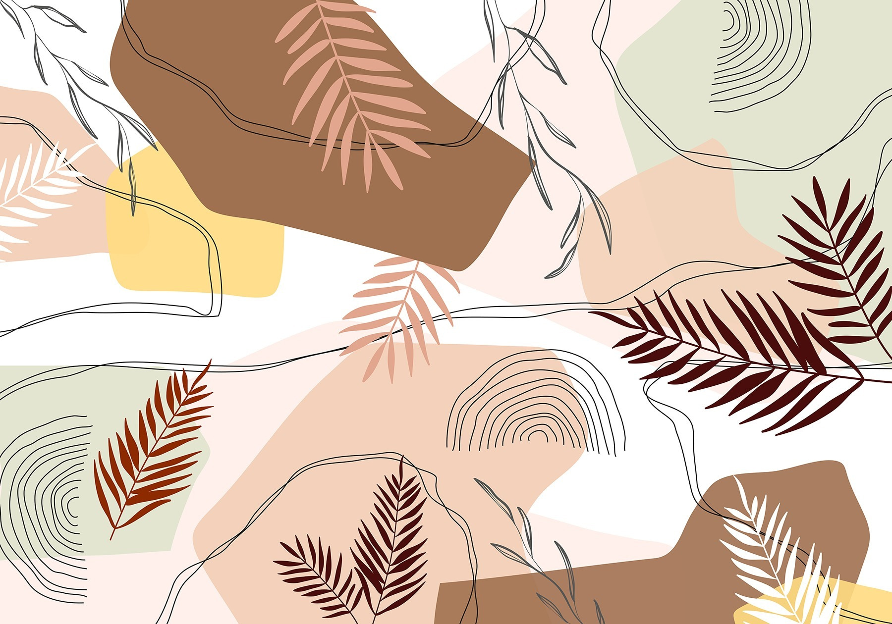 Transform your space with the fresh vibe of the “Wall Murals Pattern of Leaves and Shapes.” This mural invites nature indoors, showcasing a playful mix of earthy tones and whimsical shapes. Imagine walking into a room that feels as alive as a forest—exhilarating, right? It’s like having a bit of the outdoors wrapped around your walls, sans the bugs.