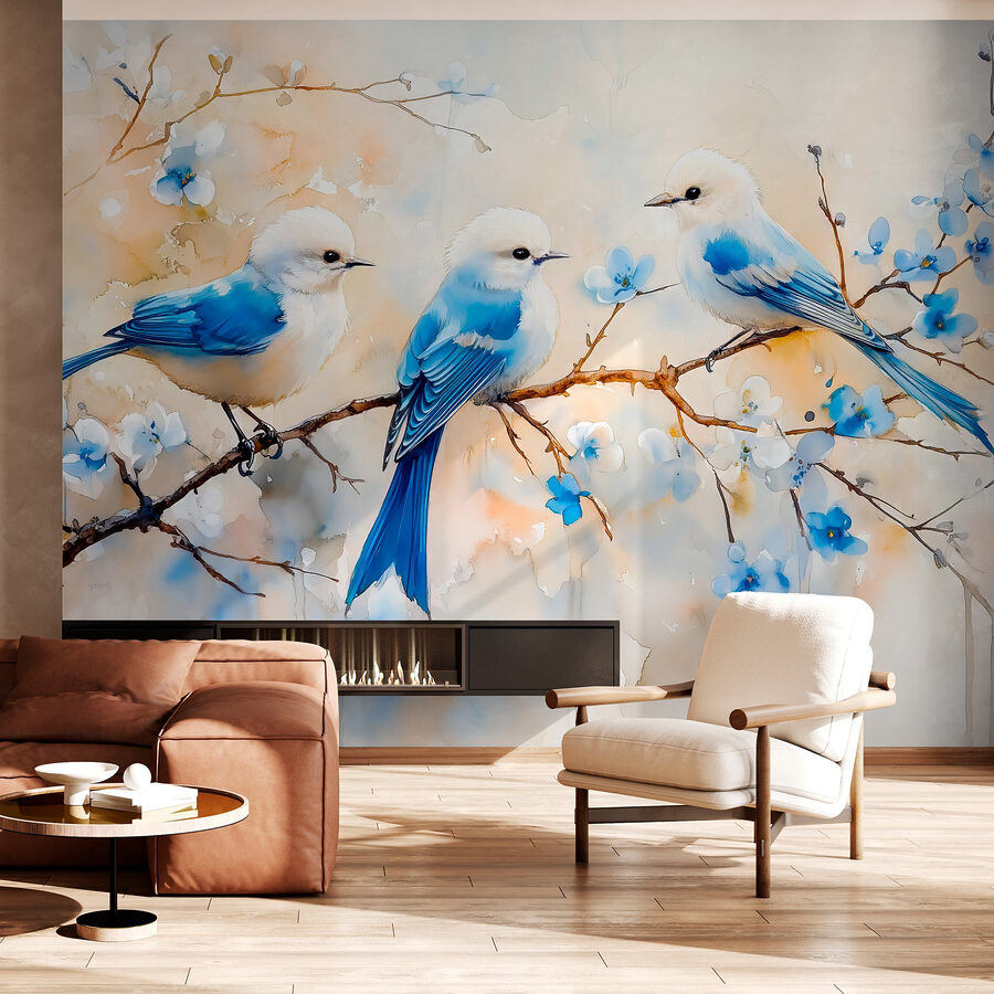 Φωτίστε κάθε δωμάτιο με αυτή τη γοητευτική ταπετσαρία τοίχου που απεικονίζει ένα χαριτωμένο τρίο μπλε πουλιών που κάθονται σε ένα απαλό ανθισμένο κλαδί. Είναι σαν να προσκαλείτε τη φύση στο χώρο σας χωρίς τον κίνδυνο να σας ξυπνήσουν τα πουλιά με το τραγούδι τους την αυγή! Το εφέ ακουαρέλας προσθέτει μια ονειρική ατμόσφαιρα, ιδανική για να δημιουργήσετε μια γαλήνια ατμόσφαιρα. Φανταστείτε να πίνετε τσάι ή καφέ σε μια ζεστή γωνιά, ενώ σας συνοδεύουν με το κελάηδισμα τους αυτοί οι φτερωτοί φίλοι. Χρησιμοποιήστε την σε παιδικό δωμάτιο, σαλόνι ή ακόμα και σε χώρο εργασίας για να εμπνεύσετε τη δημιουργικότητα. Τα μπλε χρώματα και τα απαλά άνθη σας κάνουν να νιώθετε σαν να είναι άνοιξη – οποιαδήποτε εποχή, οποιαδήποτε στιγμή. Ποιος δεν θα χαμογελούσε με αυτά τα χαριτωμένα μικρά προσωπάκια;