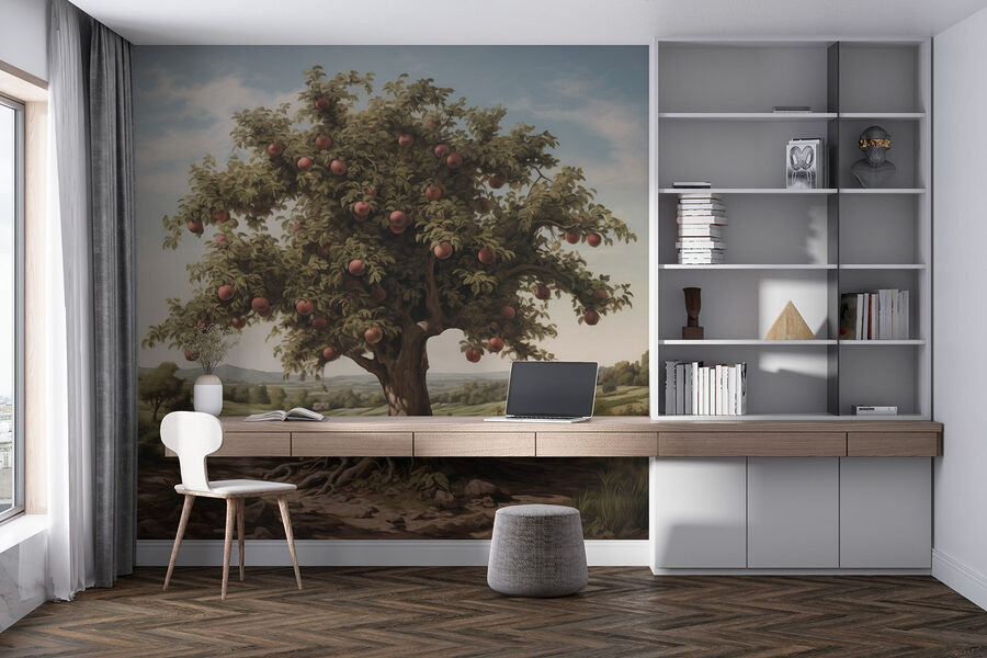 Μεταμορφώστε τον χώρο σας σε ένα γαλήνιο καταφύγιο με την γοητευτική ταπετσαρία τοίχου «Δέντρο με μήλα». Φανταστείτε το απαλό θρόισμα των φύλλων και το γλυκό, δροσερό άρωμα του φθινοπώρου, καθώς αυτή η ομορφιά φέρνει τη φύση στο εσωτερικό του σπιτιού σας. Αυτά τα ζουμερά μήλα μοιάζουν να σας προσκαλούν για πικνίκ ακριβώς κάτω από τα κλαδιά τους. Ιδανική για σαλόνια, ζεστές γωνιές ή ακόμα και μια ιδιόμορφη κουζίνα, σας κάνει να νιώθετε σαν να πίνετε μηλίτη σε μια ηλιόλουστη μέρα. Επιπλέον, ποιος δεν θα ήθελε ένα θέμα συζήτησης που σχεδόν παρακαλεί για πικνίκ; Μια πινελιά φαντασίας και πολλή φύση – μια ευχάριστη προσθήκη σε οποιαδήποτε διακόσμηση!