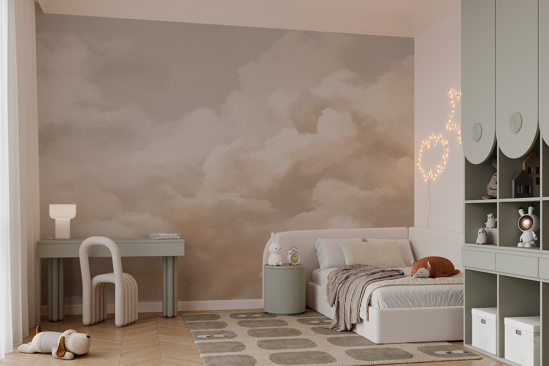 Φανταστείτε να μπαίνετε σε ένα δωμάτιο που σας αγκαλιάζει απαλά σαν τον ουρανό – αυτό ακριβώς κάνει η ταπετσαρία «Συννεφιασμένος ουρανός με λίγα σύννεφα»! Με τους απαλούς, παστέλ τόνους και τα αφράτα σύννεφα, είναι σαν να φέρνετε μια ήρεμη, ονειρική μέρα στο εσωτερικό του σπιτιού σας. Ιδανική για χώρους όπου η χαλάρωση είναι βασική, όπως μια ζεστή γωνιά ανάγνωσης ή ένα ήσυχο υπνοδωμάτιο. Φανταστείτε να πίνετε τσάι, τυλιγμένοι σε μια κουβέρτα, ενώ κοιτάζετε αυτόν τον ουρανό αντί για την οροφή. Και το καλύτερο; Είναι αυτοκόλλητη! Έτσι, αν αύριο δεν σας αρέσουν τα σύννεφα, μην ανησυχείτε. Αλλάξτε την όπως αλλάζετε γνώμη!