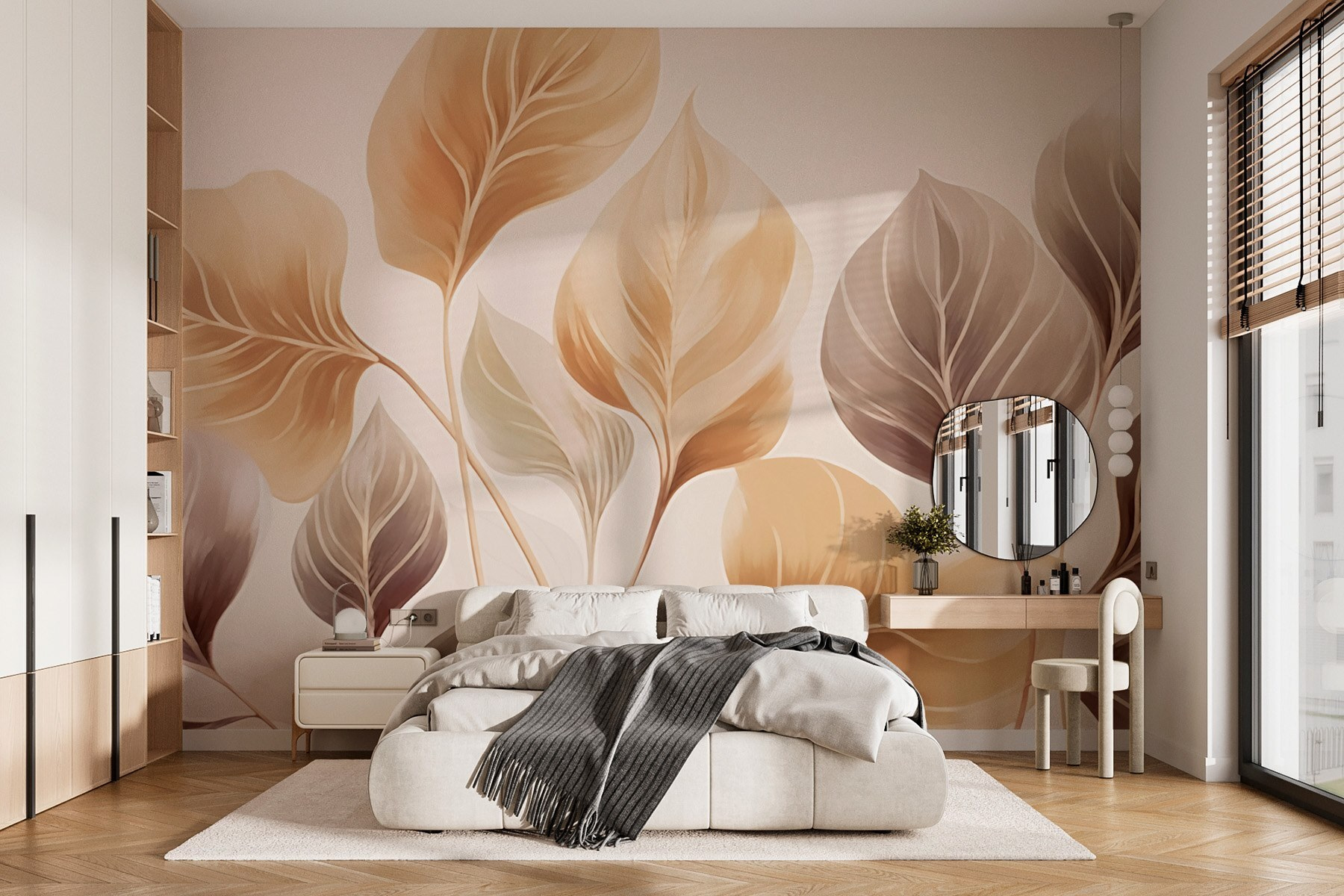 Ο μετασχηματισμός ενός χώρου μπορεί να είναι τόσο απλός όσο η προσθήκη μιας πινελιάς φύσης, και τα λεπτεπίλεπτα φύλλα αυτής της τοιχογραφίας σε καταπραϋντικούς τόνους κάνουν ακριβώς αυτό. Φανταστείτε να μπαίνετε σε ένα δωμάτιο και να αισθάνεστε αμέσως λίγο πιο χαλαροί, σαν να μπαίνετε σε ένα άνετο δάσος χωρίς λάσπη και έντομα. Αυτές οι απαλές, γήινες αποχρώσεις ψιθυρίζουν γαλήνη, προσκαλώντας όλους να πάρουν μια βαθιά ανάσα. Ιδανικό για ένα σαλόνι ή μια ήρεμη γωνιά ανάγνωσης, δημιουργεί ένα απαλό σκηνικό που κάνει την τέχνη και τα έπιπλα να ξεχωρίζουν χωρίς να κλέβουν την παράσταση. Είναι σαν να έχετε έναν ήρεμο φίλο στον τοίχο σας – πάντα εκεί, χωρίς ποτέ να σας καταπιέζει. Επιπλέον, ποιος δεν θα ήθελε το σπίτι του να μοιάζει λίγο περισσότερο με απόδραση;