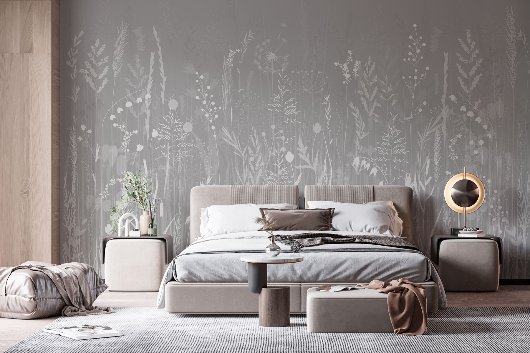 Μεταμορφώστε οποιονδήποτε χώρο με αυτή την εκπληκτική ταπετσαρία τοίχου με ένα ονειρικό γκρι φόντο διακοσμημένο με λεπτεπίλεπτα χόρτα και λουλούδια. Φανταστείτε να μπαίνετε σε ένα γαλήνιο λιβάδι κάθε φορά που εισέρχεστε στο δωμάτιο – πόσο αναζωογονητικό! Το διακριτικό σχέδιο ακουαρέλας προσθέτει μια απαλή πινελιά, δημιουργώντας μια χαλαρωτική ατμόσφαιρα. Είναι ιδανικό για άνετους χώρους καθιστικού ή γαλήνια υπνοδωμάτια, επιτρέποντάς σας να αποδράσετε στη φύση χωρίς να φύγετε από το σπίτι. Επιπλέον, είναι ένα εξαιρετικό θέμα συζήτησης – σκεφτείτε μόνο τις ιστορίες που θα μοιραστείτε πίνοντας τον καφέ σας! Οι λάτρεις της φύσης και οι ενθουσιώδεις της διακόσμησης θα γοητευτούν, φέρνοντας ένα κομμάτι της υπέροχης φύσης στο εσωτερικό του σπιτιού τους, χωρίς