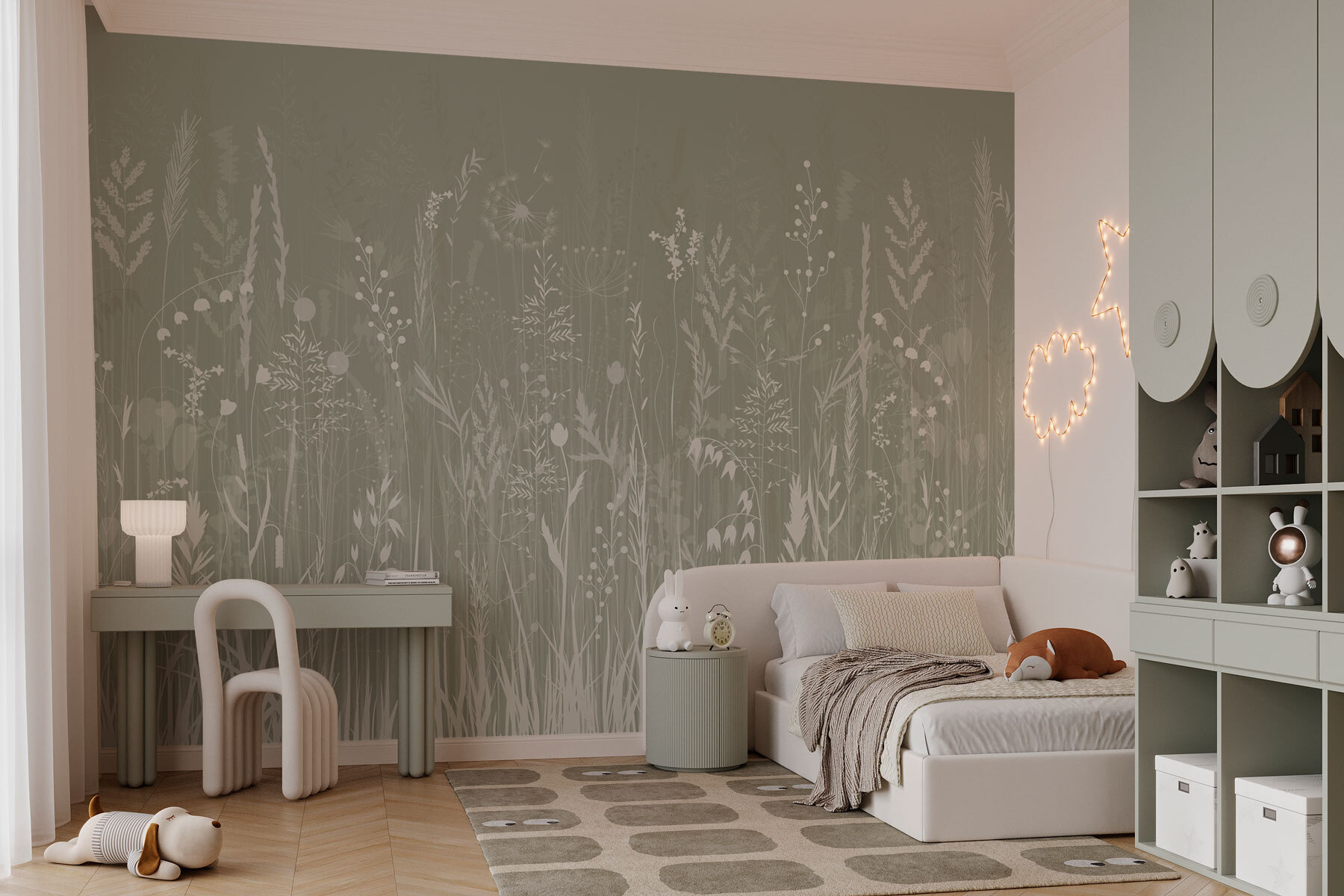 Φανταστείτε να μπαίνετε σε ένα γαλήνιο λιβάδι, όπου τα αγριολούλουδα χορεύουν απαλά στον αέρα και το γρασίδι ψιθυρίζει γλυκά μυστικά. Αυτή η τοιχογραφία, με τίτλο «Λιβάδι με λουλούδια», αποτυπώνει τέλεια αυτή την ήρεμη ατμόσφαιρα. Είναι σαν να φέρνετε ένα μικρό κομμάτι της φύσης στο εσωτερικό του σπιτιού σας, χωρίς τα έντομα και τους λεκέδες από το γρασίδι! Τα απαλά πράσινα χρώματα και τα ευαίσθητα λουλούδια δημιουργούν ένα χαλαρωτικό φόντο, ιδανικό για να ονειροπολήσετε ή να πιείτε το τσάι σας. Είναι ένας εύκολος τρόπος για να κάνετε έναν χώρο να φαίνεται ζεστός και φιλόξενος Φανταστείτε την σε μια γωνιά ανάγνωσης ή σε έναν ηλιόλουστο διάδρομο — μιλάμε για μια ανάσα φρέσκου αέρα! Δεν θα ήταν υπέροχο να έχετε μια συνεχή υπενθύμιση της ομορφιάς της φύσης στο σπίτι σας;