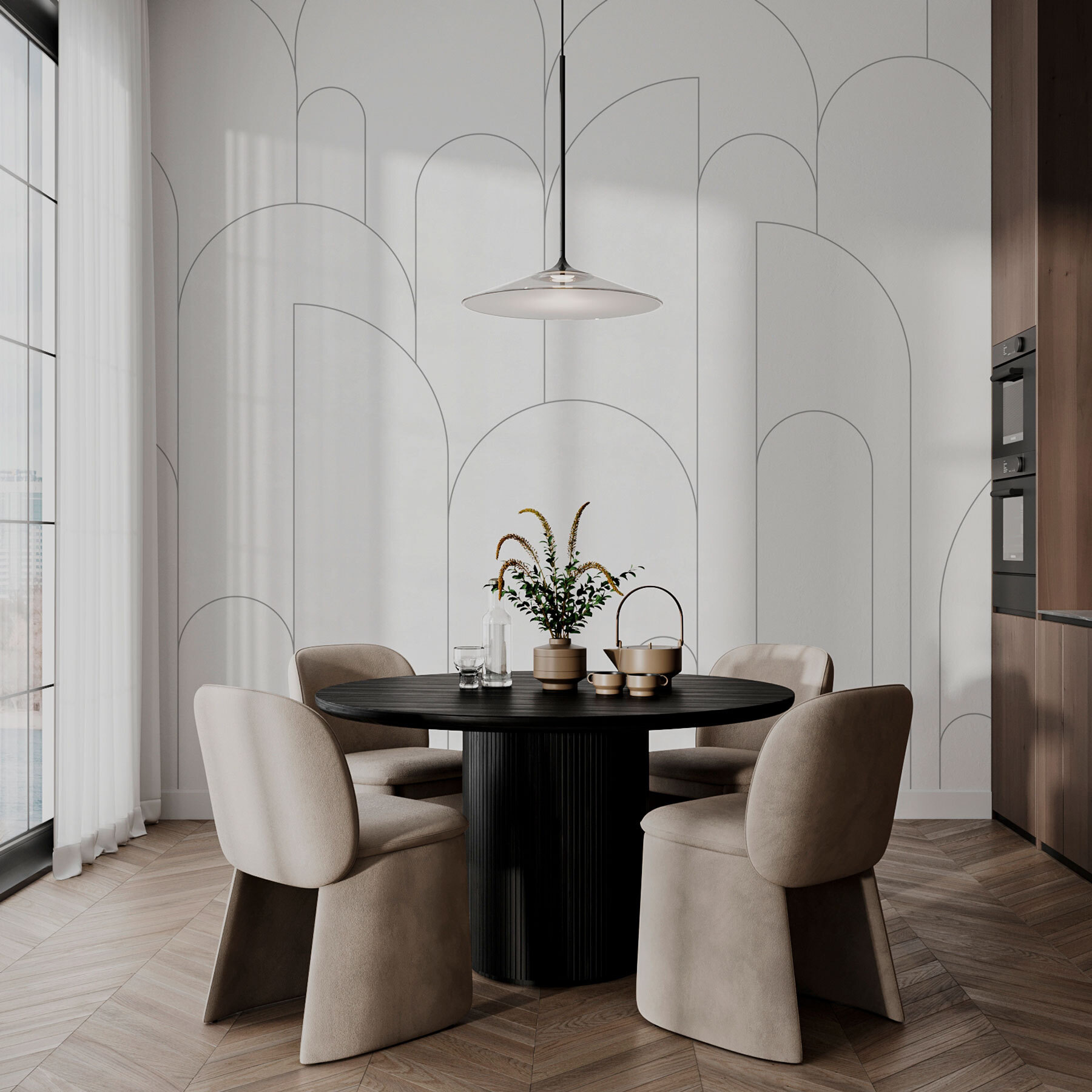 Τα παιχνιδιάρικα σχήματα χορεύουν στον τοίχο, προκαλώντας περιέργεια και συζήτηση, ενώ η μινιμαλιστική χρωματική παλέτα διατηρεί την ισορροπία. Είτε πρόκειται για σαλόνι είτε για γραφείο στο σπίτι, δημιουργεί το κατάλληλο κλίμα για δημιουργικότητα. Φανταστείτε να φιλοξενείτε φίλους, με ποτά στο χέρι, με αυτό το όμορφο φόντο. Μια ταπετσαρία που όχι μόνο διακοσμεί, αλλά και προσκαλεί ιστορίες και γέλια – τι να μην αγαπήσετε;