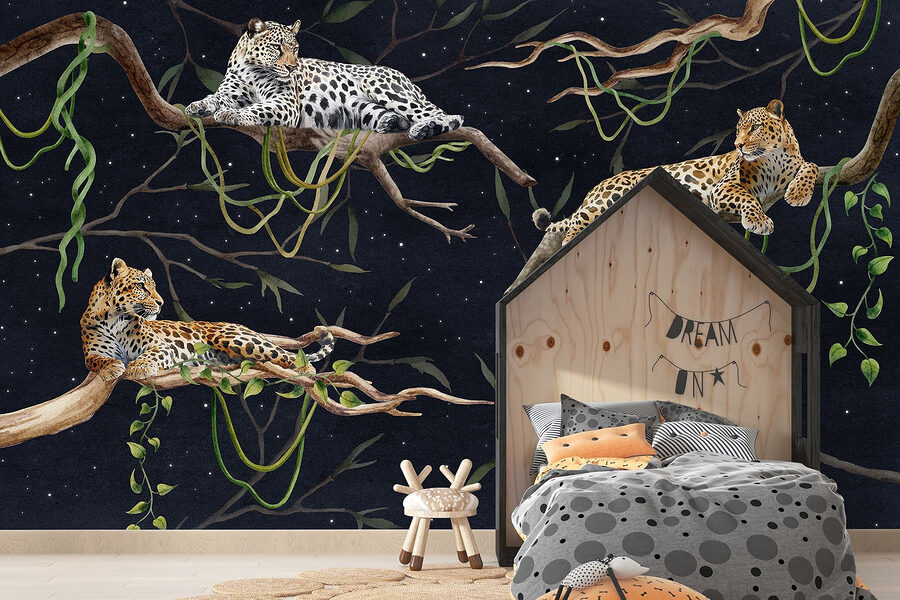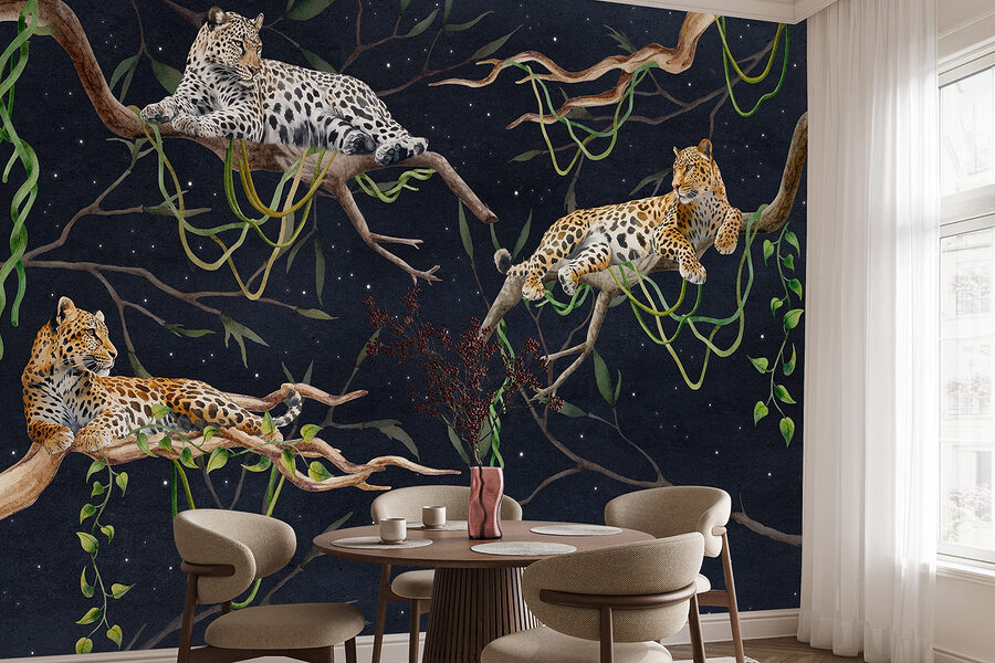 Μεταμορφώστε τους τοίχους σας σε μια άγρια όαση με αυτή την εκπληκτική τοιχογραφία με λεοπαρδάλεις που ξαπλώνουν χαριτωμένα σε κλαδιά. Είναι σαν να προσκαλείτε ένα κομμάτι της ζούγκλας στο σαλόνι σας, χωρίς την υγρασία και τα ενοχλητικά κουνούπια! Φανταστείτε να πίνετε τον πρωινό σας καφέ ενώ σας κρατούν συντροφιά, με μια τόσο ανέμελη και αβίαστη άνεση. Τα πλούσια χρώματα και οι περίπλοκες λεπτομέρειες είναι μια απόλαυση για τα μάτια, ιδανικά για να προσθέσουν μια πινελιά κομψότητας σε οποιονδήποτε χώρο. Είτε είστε λάτρης της φύσης είτε απλά κάποιος που εκτιμά τη μοναδική τέχνη, η ζεστασιά και η γοητεία αυτής της τοιχογραφίας μπορούν να πυροδοτήσουν συζητήσεις και να δημιουργήσουν μια ζεστή ατμόσφαιρα. Επιπλέον, ποιος δεν θα ήθελε ένα τρίο λεοπαρδάλεων να χαλαρώνει γύρω του; Μπορεί να γίνουν το νέο επίκεντρο του σπιτιού σας!