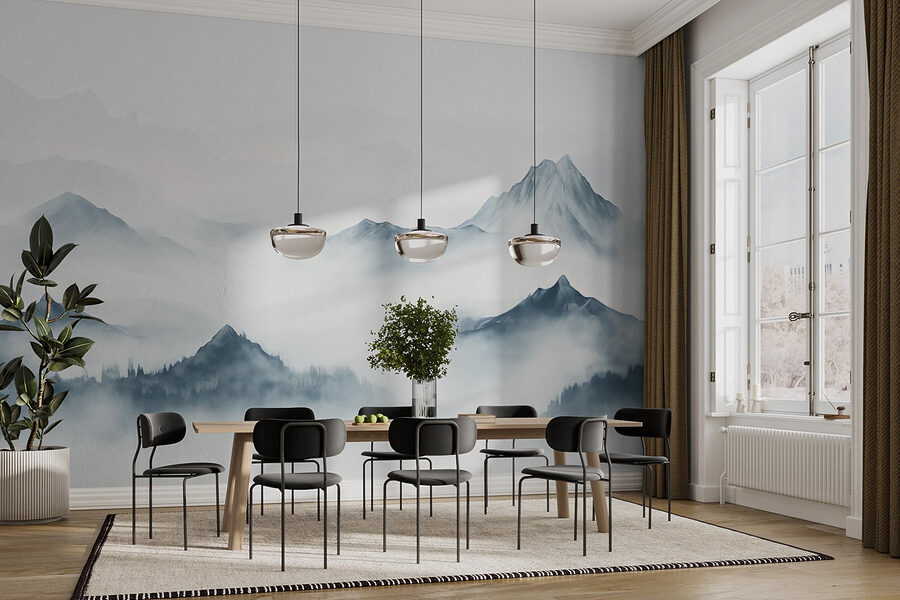 Μεταμορφώστε οποιοδήποτε δωμάτιο σε ένα γαλήνιο καταφύγιο με την ταπετσαρία “Foggy Mountain Range”. Φανταστείτε να ξυπνάτε κάθε μέρα με ομιχλώδεις βουνοκορφές που μοιάζουν να σας ψιθυρίζουν μυστικά της φύσης. Αυτό το εκπληκτικό έργο δημιουργεί μια αίσθηση ηρεμίας, σαν μια απαλή αγκαλιά από την ίδια τη φύση. Είναι ιδανικό για ζεστές γωνιές ανάγνωσης ή ζωντανούς χώρους διαβίωσης — απλά φανταστείτε τους φίλους σας συγκεντρωμένους γύρω σας, γοητευμένους από τα δροσερά μπλε και τα απαλά γκρι χρώματα. Με κάθε ματιά, μπορεί να σας εμπνεύσει ακόμη και για μια περιπετειώδη εξόρμηση (καλή τύχη στο να πείσετε τη γάτα να σας συνοδεύσει!). Αναβαθμίστε τον χώρο σας και αφήστε τα βουνά να μοιραστούν την ήσυχη σο