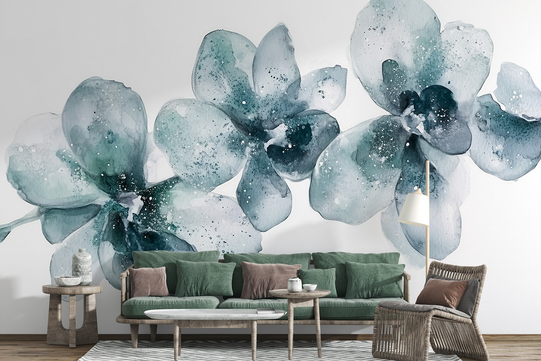Ιδανικό για ένα άνετο σαλόνι ή ένα γαλήνιο υπνοδωμάτιο, αυτά τα λουλούδια ακουαρέλας μοιάζουν σχεδόν με μια απαλή αγκαλιά για τους τοίχους σας. Ξέρετε, αυτό το συναίσθημα όταν μυρίζετε φρέσκα λουλούδια; Είναι σαν αυτό – αλλά οπτικά! Οι φίλοι μπορεί να κάνουν ακόμα και μια διπλή ματιά, νομίζοντας ότι έχετε έναν μυστικό κήπο κρυμμένο μέσα σας. Γιατί λοιπόν να μην μετατρέψετε έναν απλό τοίχο σε ένα ανθισμένο αριστούργημα; Θα χαμογελάτε κάθε φορά που θα περνάτε από εκεί.