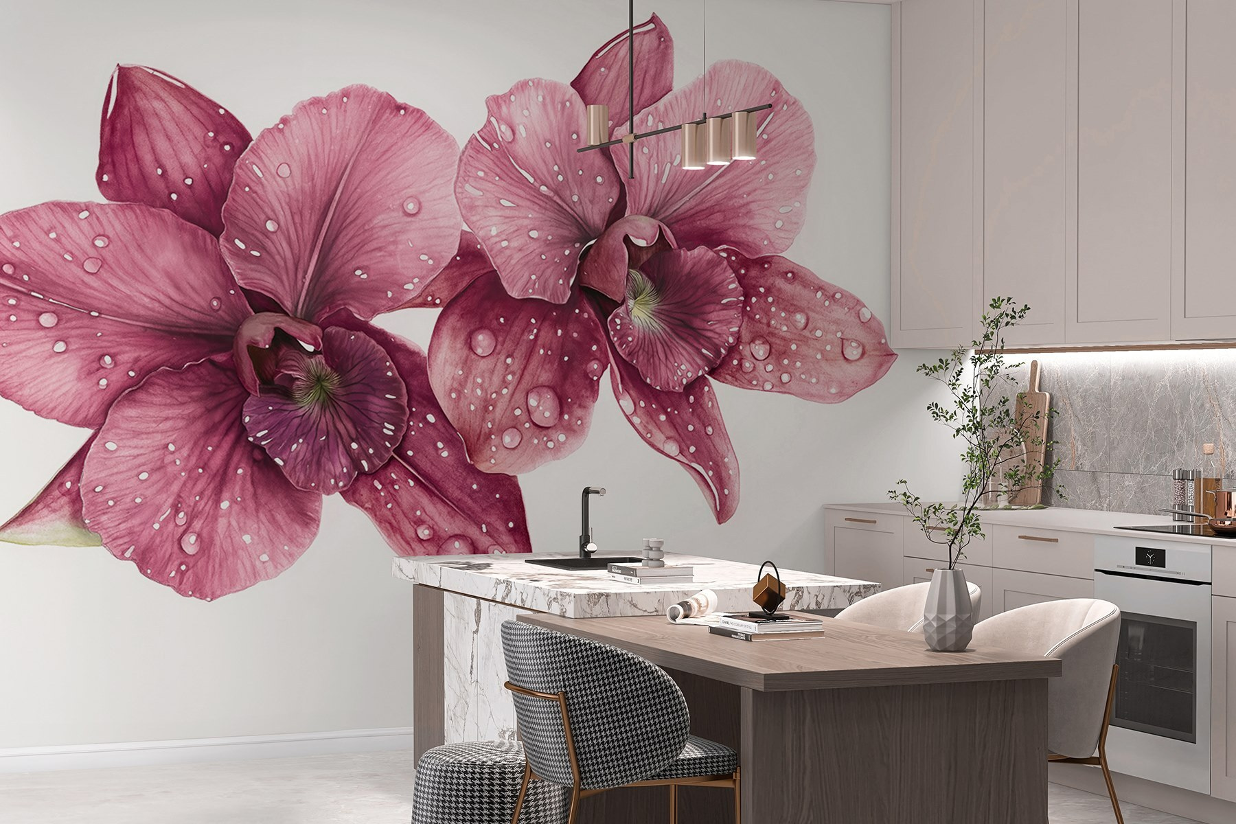 Μεταμορφώστε οποιονδήποτε χώρο με αυτή την εκπληκτική τοιχογραφία τοίχου με ντελικάτα άνθη που φιλιούνται από δροσιστικές σταγόνες. Φανταστείτε να ξυπνάτε κάθε μέρα με μια έκρηξη από απαλές ροζ ορχιδέες που μοιάζουν να ψιθυρίζουν “γεια” καθώς το φως χορεύει στα πέταλά τους. Είναι σαν να φέρνετε έναν μίνι κήπο μέσα στο σπίτι, χωρίς το ποτιστήρι και τα ενοχλητικά ζωύφια. Ιδανική για να προσθέσετε μια πινελιά φύσης σε ένα άνετο σαλόνι ή ένα ήσυχο υπνοδωμάτιο, αυτή η τοιχογραφία προσκαλεί μια αναζωογονητική ατμόσφαιρα που σίγουρα θα φτιάξει τη διάθεση. Οι φίλοι θα θαυμάζουν και θα αναρωτιούνται πώς καταφέρατε να μετατρέψετε το χώρο σας σε μια ανθισμένη όαση. Δεν είναι απλώς διακόσμηση, είναι μια ευγενική υπενθύμιση της ομορφιάς της φύσης ακριβώς στο σπίτι σας.