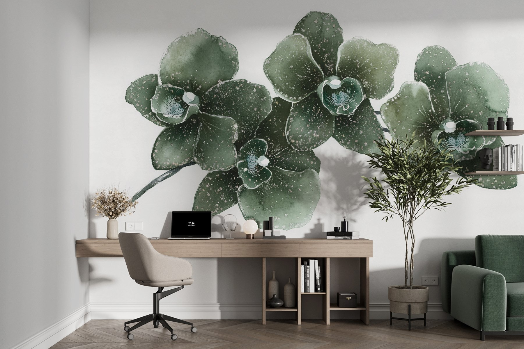 Μεταμορφώστε κάθε δωμάτιο σε μια γαλήνια όαση με την ταπετσαρία «Delicate Orchids in Soft Hues». Φανταστείτε το εξής: είναι Δευτέρα πρωί και αντί να βλέπετε έναν βαρετό τοίχο, σας καλωσορίζουν χαριτωμένες ορχιδέες που μοιάζουν να ψιθυρίζουν ηρεμία. Τα απαλά χρώματα δημιουργούν μια ατμόσφαιρα ηρεμίας, καθιστώντας την ιδανική για μια ζεστή γωνιά ανάγνωσης ή ένα ονειρεμένο υπνοδωμάτιο. Φανταστείτε να κουλουριάζεστε με ένα βιβλίο, με τις απαλές αποχρώσεις να σας περιβάλλουν σαν μια ζεστή αγκαλιά. Επιπλέον, δεν χρειάζεται να έχετε πράσινο δάχτυλο — αυτές οι ομορφιές παραμένουν ζωντανές όλο το χρόνο χωρίς καμία φροντίδα! Είναι σαν να έχετε έναν κήπο που ανθίζει για πάντα, χωρίς την ενοχλητική γύρη!