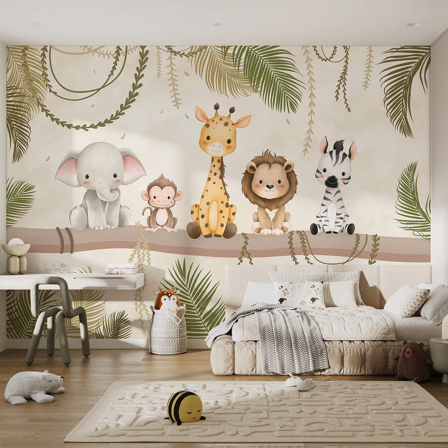 Μεταμορφώστε το χώρο σας σε μια ζωντανή ζούγκλα με αυτή την απολαυστική τοιχογραφία με ένα αξιολάτρευτο πλήρωμα από ζωόφιλους που κάθονται σε ένα γερό κλαδί. Φανταστείτε αυτό: μια θρασύτατη μαϊμού, ένας ευγενικός ελέφαντας, μια γοητευτική καμηλοπάρδαλη, ένα φιλικό λιοντάρι και μια παιχνιδιάρικη ζέβρα, όλα έτοιμα να φέρουν χαρά και ζεστασιά στους τοίχους σας. Είναι σαν να έχετε ένα μίνι σαφάρι στο σπίτι σας. Ιδανική για ένα παιδικό δωμάτιο ή μια ζεστή γωνιά, αυτή η τοιχογραφία προσκαλεί τα χαμόγελα και εξάπτει τη φαντασία. Ποιος δεν θα ήθελε να επιστρέψει στο σπίτι του σε ένα μάτσο φιλικές φατσούλες; Ιδανική για παιδιά όλων των ηλικιών ή απλά για οποιονδήποτε έχει μεγάλη καρδιά για τα ζώα!