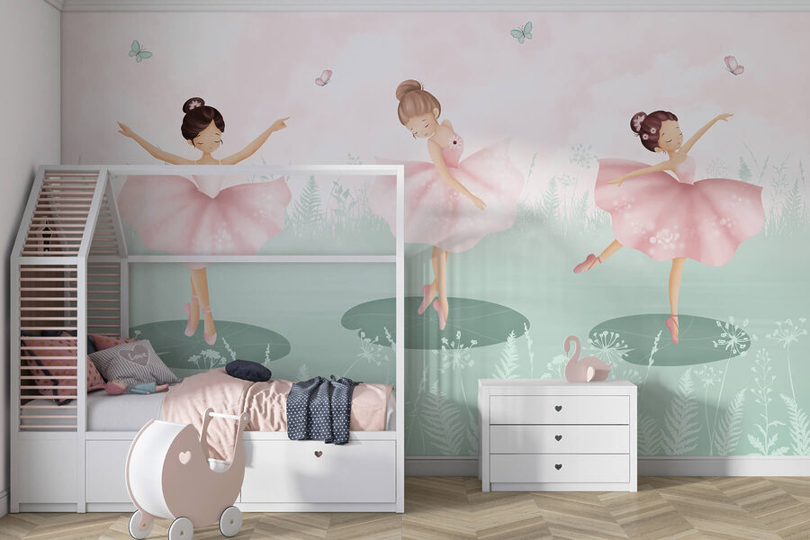 Μεταμορφώστε το χώρο σας με αυτή τη γοητευτική τοιχογραφία με μια ευχάριστη ομάδα κοριτσιών που χορεύουν σε ένα ηλιόλουστο χωράφι. Είναι σαν μια σκηνή κατευθείαν από ένα ευφάνταστο όνειρο, όπου το γέλιο γεμίζει τον αέρα και οι πεταλούδες πετάνε γύρω σας. Φανταστείτε μικροσκοπικά ποδαράκια να στροβιλίζονται και να στροβιλίζονται μέσα σε αυτές τις απαλές ροζ φούστες, προκαλώντας μια αίσθηση χαράς και ανεμελιάς. Αυτή η τοιχογραφία είναι ιδανική για το δωμάτιο ενός μικρού παιδιού, ενθαρρύνοντας τη δημιουργικότητα και τη φαντασία. Απλά φανταστείτε τα χαμόγελα και τις ιστορίες που θα μπορούσαν να συμβούν εδώ, με τους μικρούς χορευτές να μοιράζονται τις δικές τους περιπέτειες διασκέδασης και φιλίας. Μια βουτιά ευτυχίας για κάθε τοίχο!