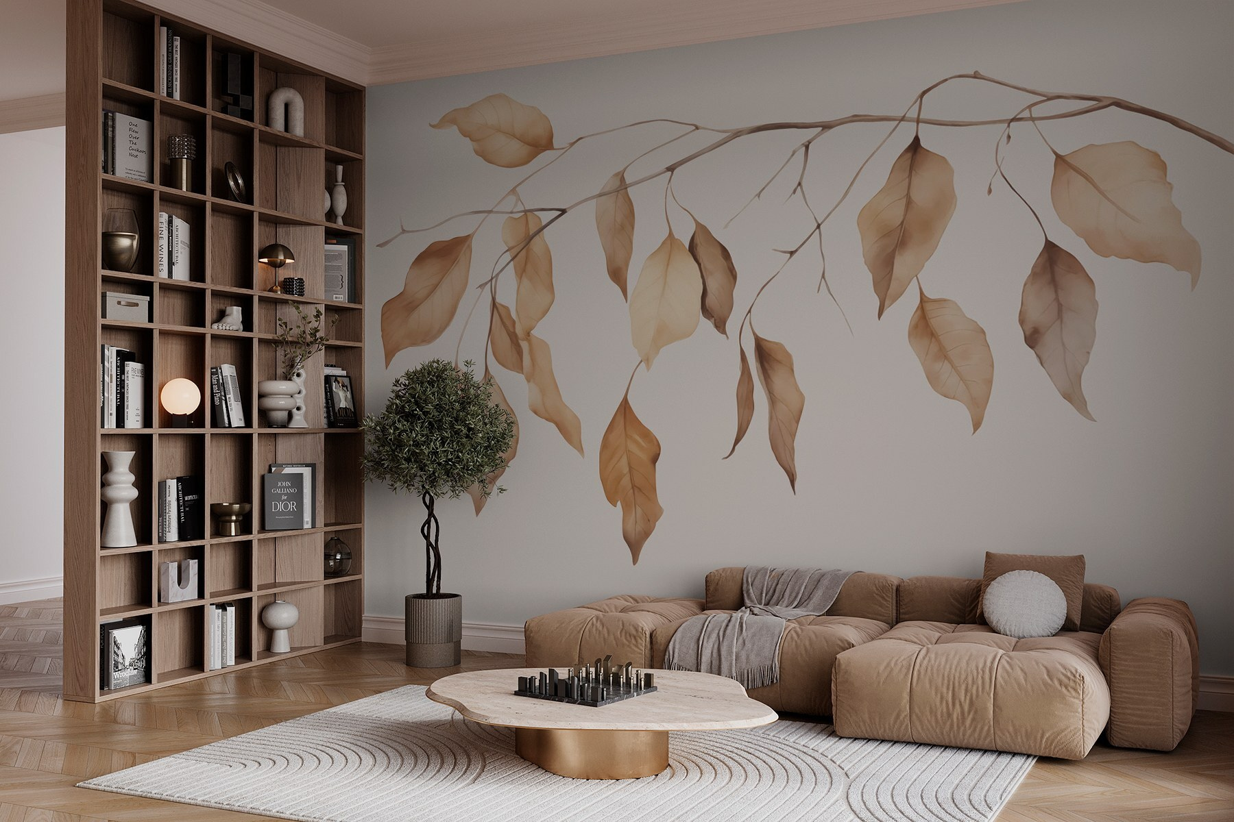 Μεταμορφώστε έναν κενό τοίχο σε μια γαλήνια απόδραση με αυτή την τοιχογραφία τοίχου με τα λεπτά κλαδιά που κοσμούνται με απαλά καφέ φύλλα. Κάθε φύλλο ψιθυρίζει ιστορίες της φύσης, δημιουργώντας μια ζεστή ατμόσφαιρα που προσκαλεί ζεστασιά σε κάθε χώρο. Φανταστείτε να πίνετε τον καφέ σας σε ένα δωμάτιο που κοσμεί αυτή η τοιχογραφία, με τις ηρεμιστικές αποχρώσεις να συνδυάζονται υπέροχα με τη διακόσμησή σας. Αισθάνεστε σαν ένα ατελείωτο φθινόπωρο, όπου κάθε ματιά στον τοίχο σας υπενθυμίζει να χαλαρώσετε και να αναπνεύσετε. Ιδανικό για σαλόνια ή υπνοδωμάτια, αυτό το κομμάτι θα κάνει τους επισκέπτες να αναρωτιούνται για τον μυστικό σας κήπο, που περιμένει να εξερευνηθεί. Είναι η φύση, αλλά χωρίς τα λασπωμένα παπούτσια!