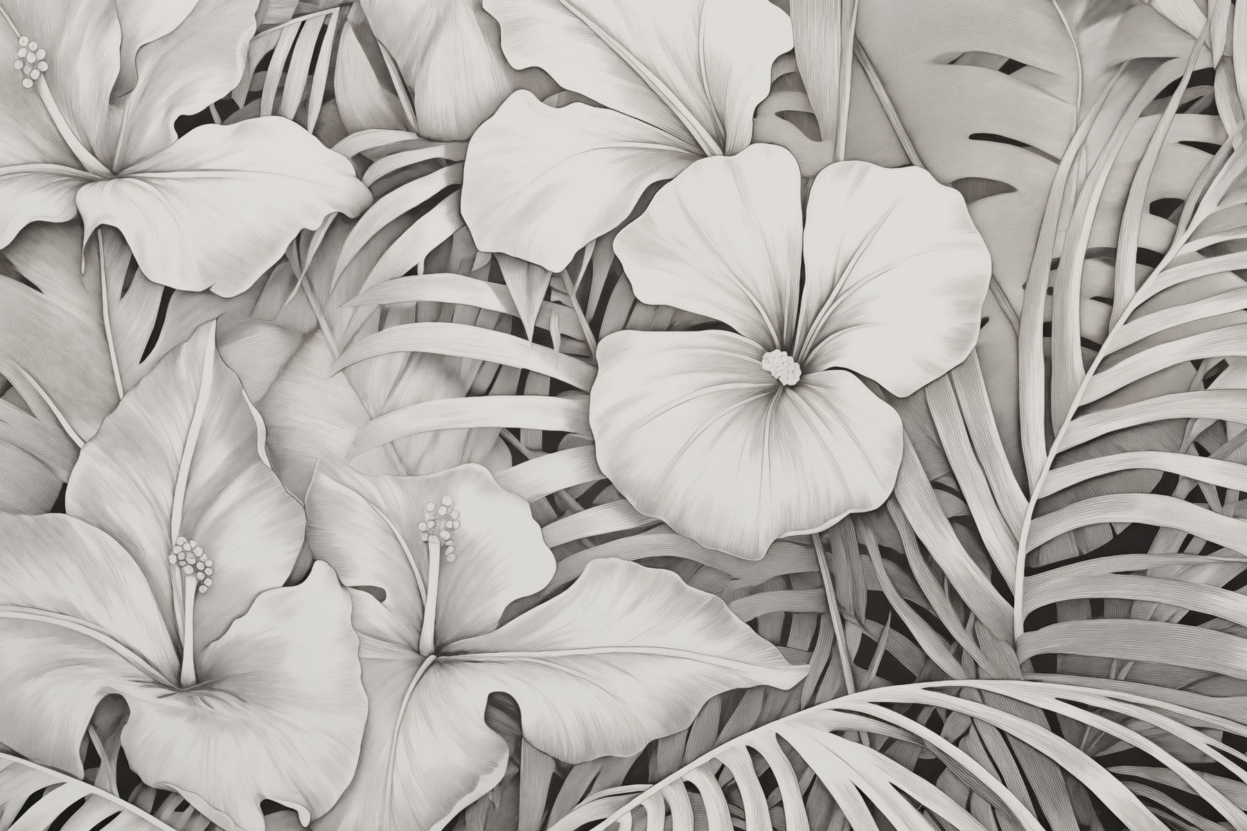 Μεταμορφώστε οποιονδήποτε χώρο σε μια ήσυχη όαση με αυτή την εκπληκτική ταπετσαρία «Delicate Flowers in Monochrome Hues». Φανταστείτε να μπαίνετε σε ένα δωμάτιο όπου οι απαλές γραμμές και τα περίτεχνα μοτίβα από άνθη και φύλλα σας ψιθυρίζουν ηρεμία. Αυτό το κομμάτι αποπνέει κομψότητα, καθιστώντας το ιδανικό για μια γωνιά ανάγνωσης ή ένα άνετο σαλόνι.