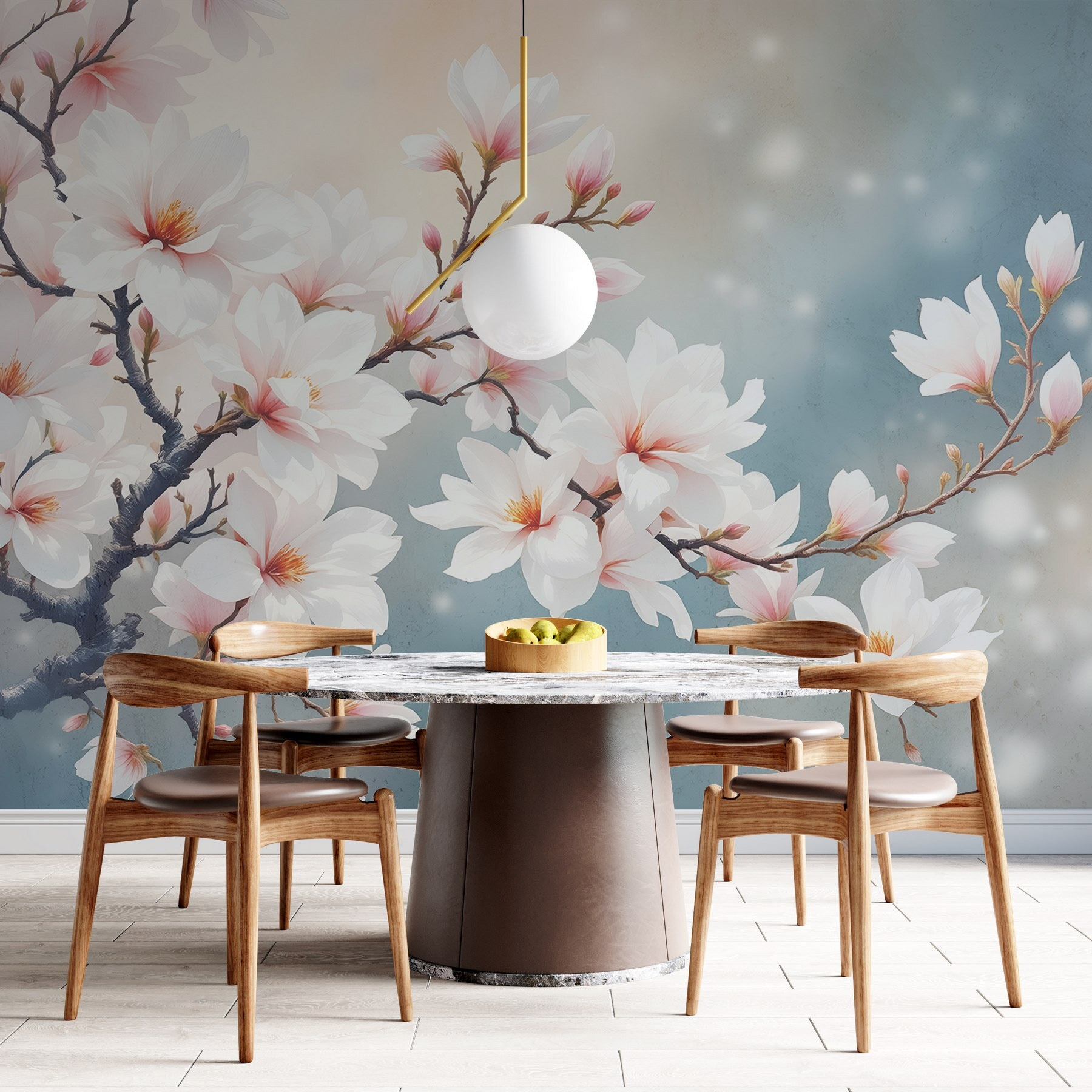 Transform your space with this dreamy mural, “Tree with White Flowers.” Imagine stepping into a serene landscape where delicate blossoms dance on branches, whispering secrets of spring. The soft watercolor hues create an inviting atmosphere, perfect for cozy corners or brightening up a dull wall. It’s like having nature’s charm right in the living room—minus the pollen!