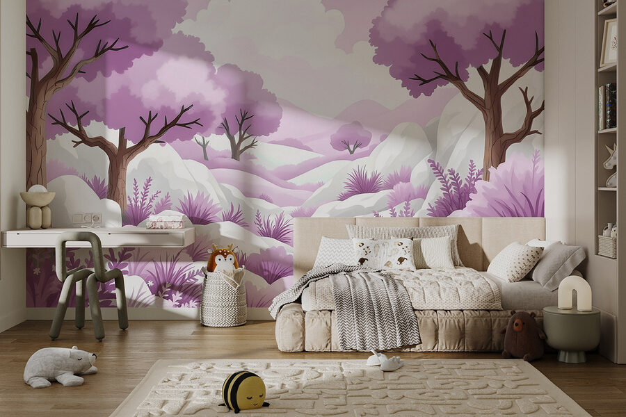 Μεταμορφώστε οποιοδήποτε δωμάτιο σε ένα ονειρικό καταφύγιο με αυτή τη μαγευτική ταπετσαρία τοίχου, «Τοπίο με δέντρα και χιόνι». Φανταστείτε να μπαίνετε σε ένα φανταστικό δάσος, όπου απαλά δέντρα λεβάντας λικνίζονται απαλά, περιτριγυρισμένα από αφράτο χιόνι και ευαίσθητα φυτά. Είναι σαν ένας μαγικός κόσμος όπου ο χειμώνας συνυπάρχει αρμονικά με την άνοιξη!