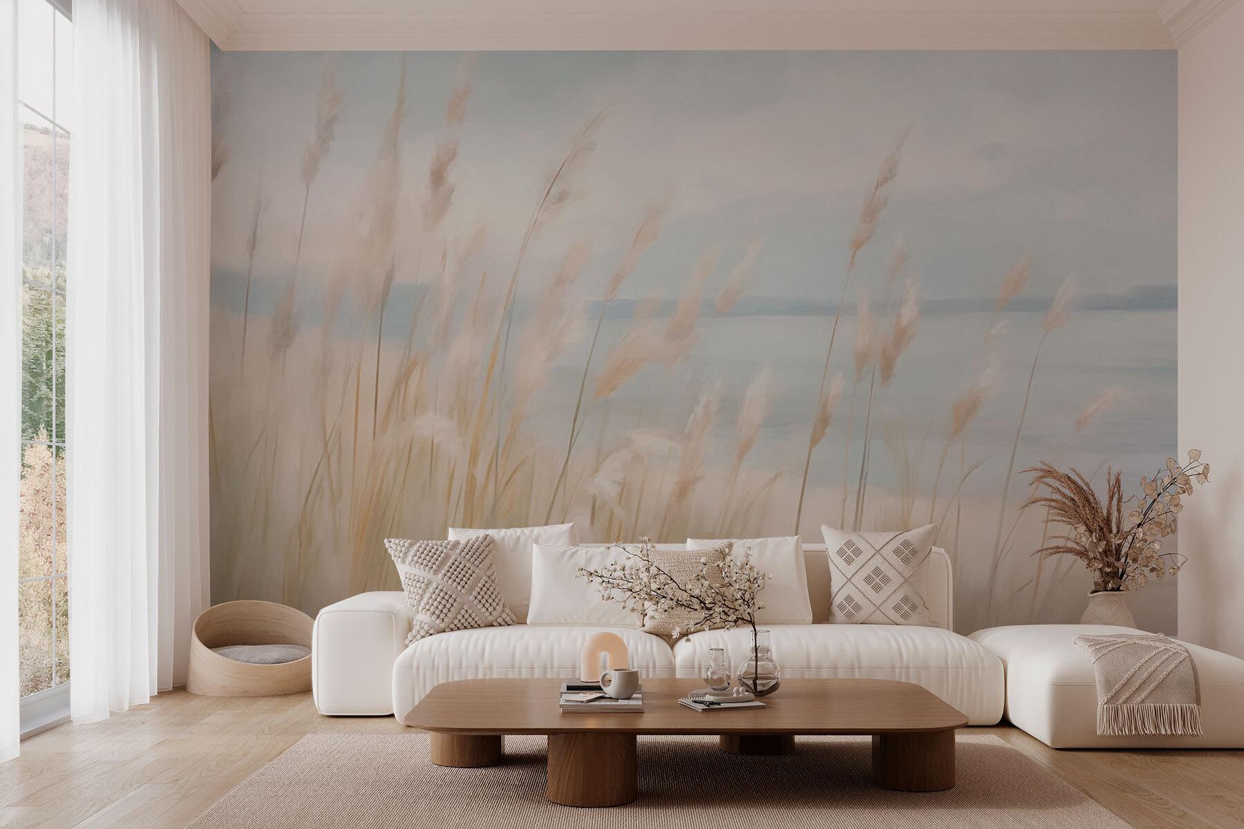 Μεταμορφώστε οποιονδήποτε χώρο με αυτή την υπέροχη ταπετσαρία τοίχου που απεικονίζει ψηλά χόρτα που κυματίζουν απαλά δίπλα σε ένα γαλήνιο νερό. Φανταστείτε το εξής: ένα άνετο δωμάτιο όπου το πρωινό φως του ήλιου εισέρχεται και αυτή η ταπετσαρία δημιουργεί μια αίσθηση ηρεμίας. Είναι σαν να κάνετε μια βόλτα στη φύση χωρίς να βγείτε έξω — ιδανικό για όσους αγαπούν το πράσινο χωρίς να χρειάζεται να το φροντίζουν! Τα απαλά χρώματα δημιουργούν μια χαλαρωτική ατμόσφαιρα, καθιστώντας το ιδανικό φόντο για ήσυχη ανάγνωση ή για να πιείτε καφέ με φίλους. Σοβαρά, ποιος δεν θα ένιωθε πιο χαλαρός με μια τόσο όμορφη θέα; Δεν είναι απλώς διακόσμηση, είναι ένα μικρό κομμάτι της φύσης μέσα στο σπίτι σας!