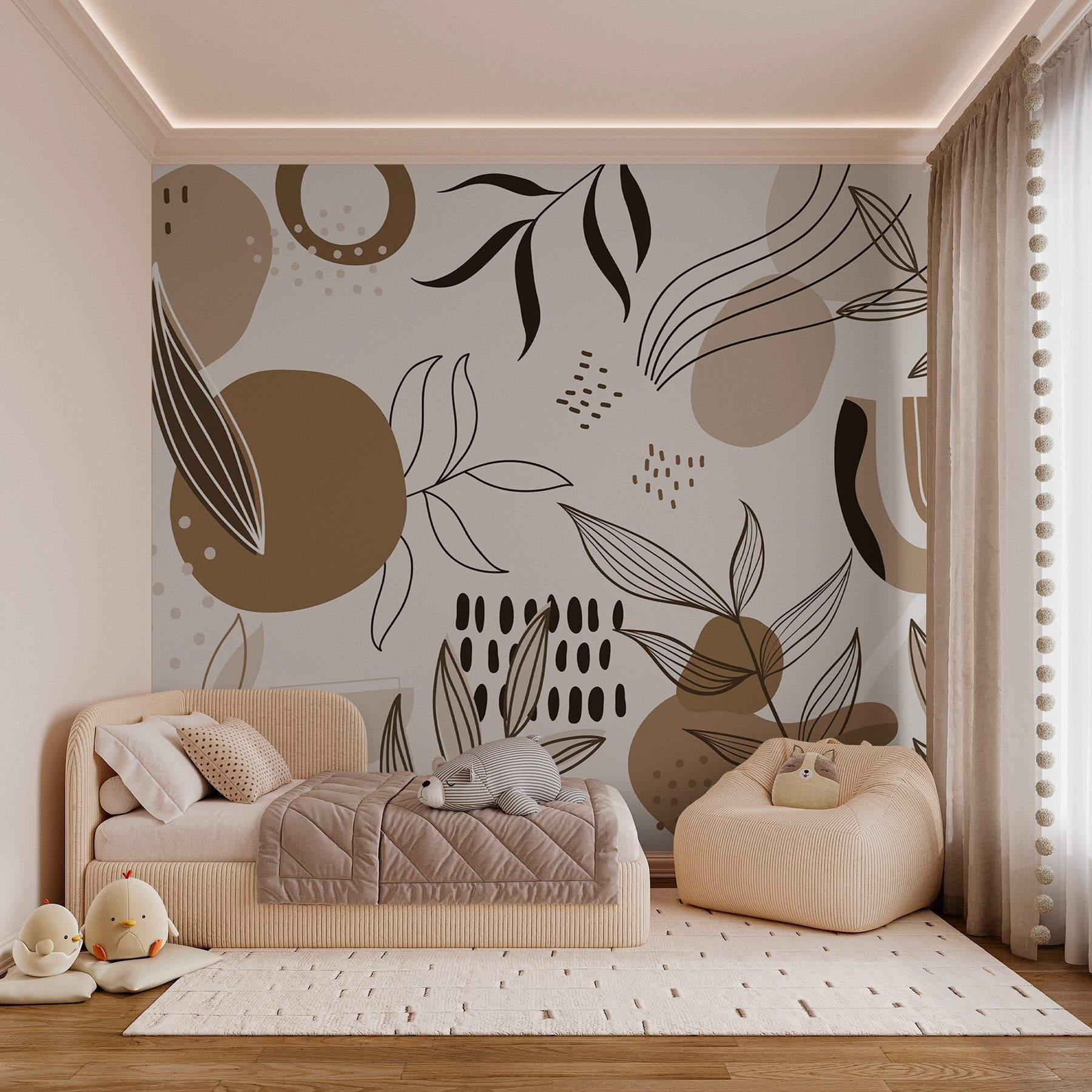 Μεταμορφώστε οποιονδήποτε χώρο με αυτή την απολαυστική τοιχογραφία τοίχου, με ένα παιχνιδιάρικο μοτίβο από φύλλα και λουλούδια. Φανταστείτε να μπαίνετε σε ένα δωμάτιο όπου η φύση ζωντανεύει – χωρίς να χρειάζεται να έχετε κήπο έξω. Αυτό το σχέδιο πλέκει γήινους τόνους και διασκεδαστικά σχήματα, δημιουργώντας μια ατμόσφαιρα που είναι χαλαρή και αναζωογονητική. Ιδανικό για άνετες γωνιές ή ζωντανά σαλόνια, προσκαλεί μια αίσθηση ηρεμίας και δημιουργικής έμπνευσης. Φανταστείτε να πίνετε τον καφέ σας περιτριγυρισμένοι από αυτά τα χαρούμενα μοτίβα, προκαλώντας χαμόγελα και καλές συζητήσεις. Ποιος ήξερε ότι οι τοίχοι θα μπορούσαν να φέρουν τέτοια ζωηρή ενέργεια; Ένα άγγιγμα της φύσης σε εσωτερικούς χώρους, και όλα αυτά χωρίς να απαιτείται πότισμα!
