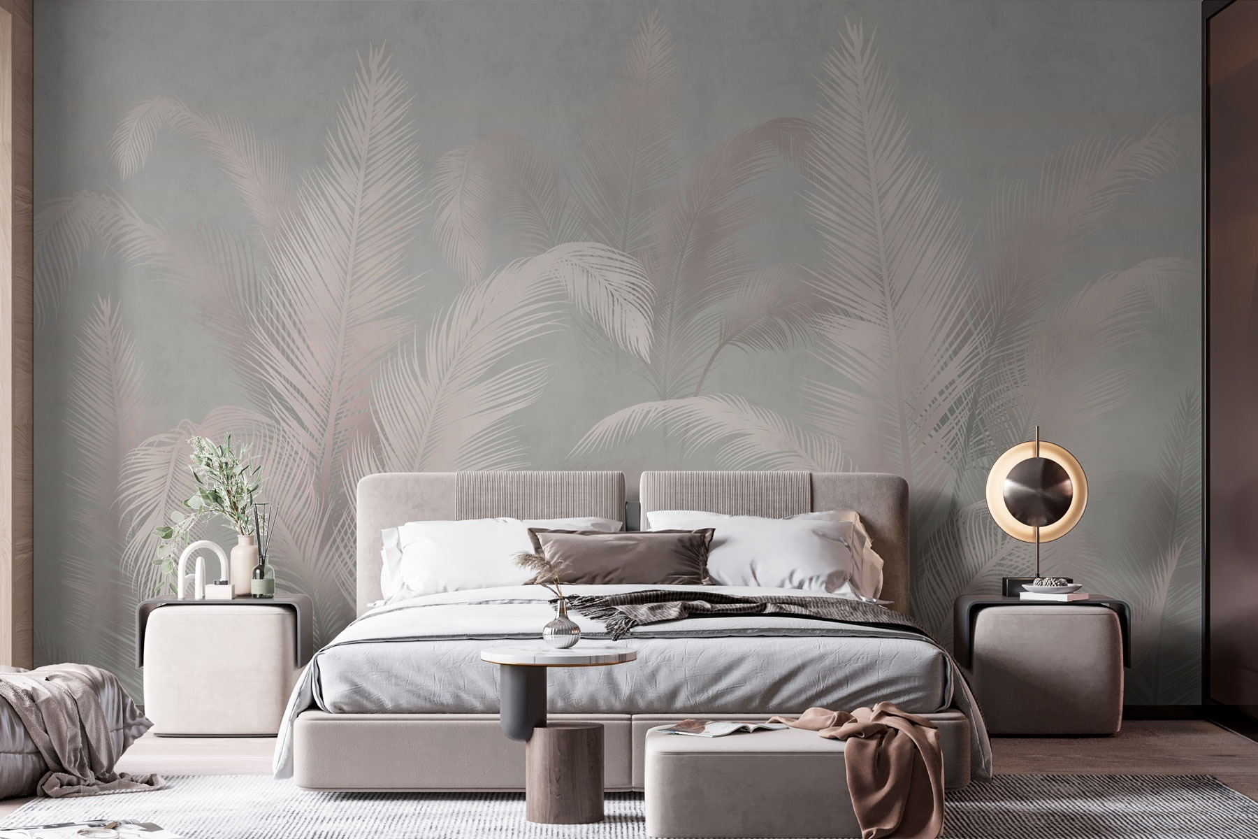 Transform your space into a serene oasis with this delightful mural featuring delicate palm leaves in soft, muted tones. Imagine waking up to a gentle palette that whispers peace rather than shouts for attention. The soothing colors create a backdrop that feels both fresh and timeless—perfect for any room that needs a little splash of nature’s charm.