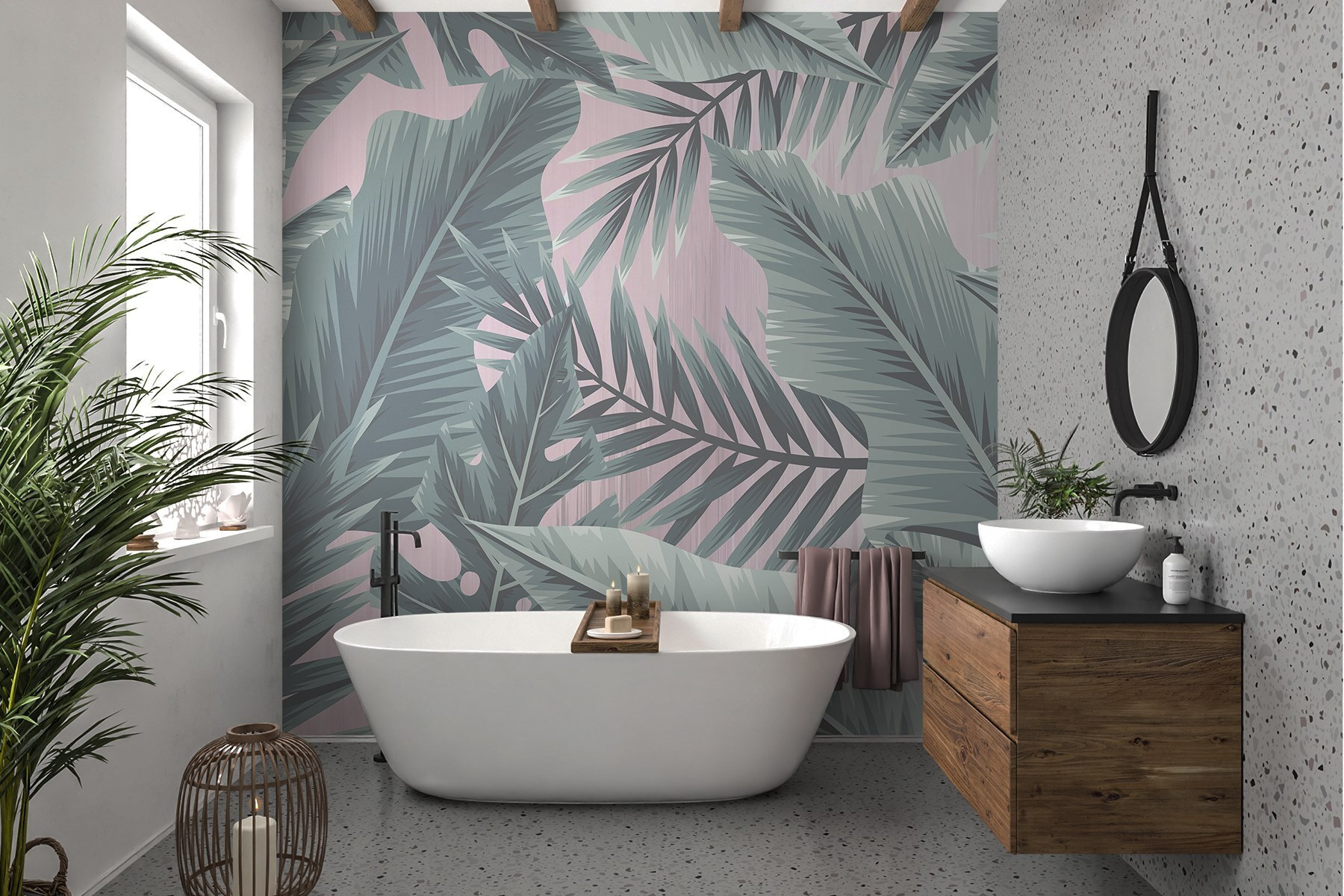 Μεταμορφώστε τον χώρο σας σε μια γαλήνια όαση με το “Nature’s Tapestry in Soft Hues”. Αυτή η μαγευτική ταπετσαρία τοίχου φέρνει την πλούσια τροπική ατμόσφαιρα στο σαλόνι, την κρεβατοκάμαρα ή την άνετη γωνιά που αγαπάτε. Φανταστείτε το: χαλαρώνετε με ένα βιβλίο, περιτριγυρισμένοι από ονειρεμένα φύλλα φοίνικα, απαλά πράσινα χρώματα που αναμειγνύονται με απαλούς ροζ τόνους. Είναι σαν να βρίσκεστε σε διαρκείς διακοπές, χωρίς το ηλιακό έγκαυμα.