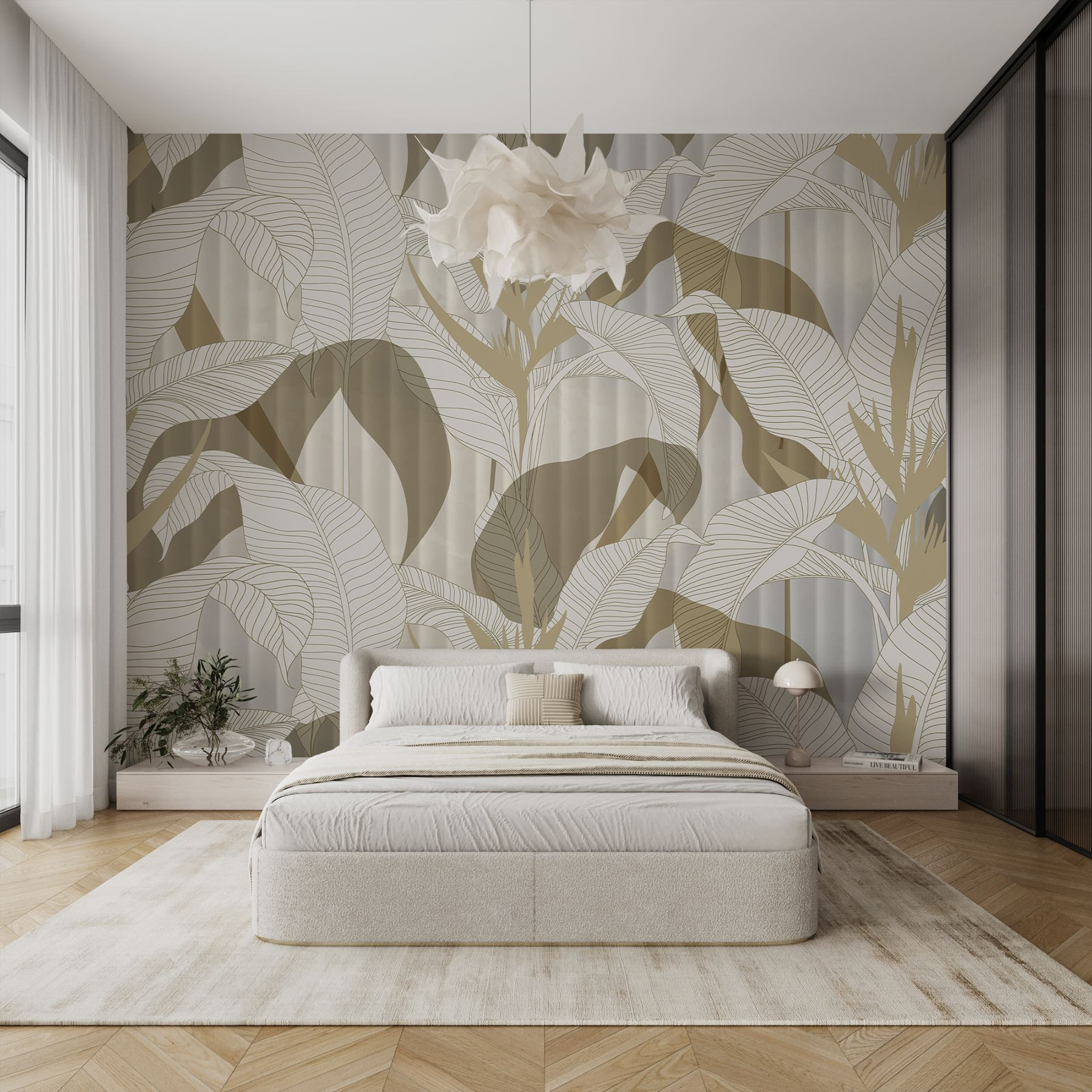 Transforming a room can be as easy as one gorgeous wall! This wall mural, with its dreamy blend of leaves and flowers, brings an instant touch of nature indoors without the watering can. Imagine waking up surrounded by these soft, earthy tones, creating that cozy, leafy sanctuary. Perfect for a serene bedroom or lively living space, it offers a touch of tranquility and style. Friends might even ask if there’s a secret garden hiding in your home! Plus, who doesn’t want a daily reminder of nature right in their living room? It’s like having a slice of the outdoors, minus the bugs!