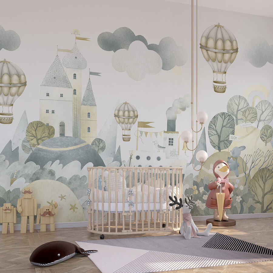 Μεταμορφώστε το χώρο σας με αυτή την ιδιόρρυθμη τοιχογραφία με μια γαλήνια σκηνή υδατογραφίας ενός κάστρου που περιβάλλεται από γοητευτικά αερόστατα. Είναι σαν να μπαίνετε σε ένα ονειρικό παραμύθι, όπου οι περιπέτειες περιμένουν ακριβώς πίσω από τους λόφους. Φανταστείτε ένα άνετο απόγευμα, πίνοντας τσάι, ενώ ατενίζετε τα απολαυστικά χρώματα και τα απαλά σύννεφα που παρασύρονται. Κάθε αερόστατο μοιάζει να ψιθυρίζει ιστορίες από μακρινές χώρες, εμπνέοντας ονειροπολήσεις και περιπλάνηση. Ιδανική για ένα παιδικό δωμάτιο ή για ένα παιχνιδιάρικο καθιστικό, αυτή η τοιχογραφία προσθέτει μια πινελιά μαγείας που μπορεί να φωτίσει τη μέρα οποιουδήποτε. Γιατί να μην αφήσετε τη φαντασία να πετάξει;