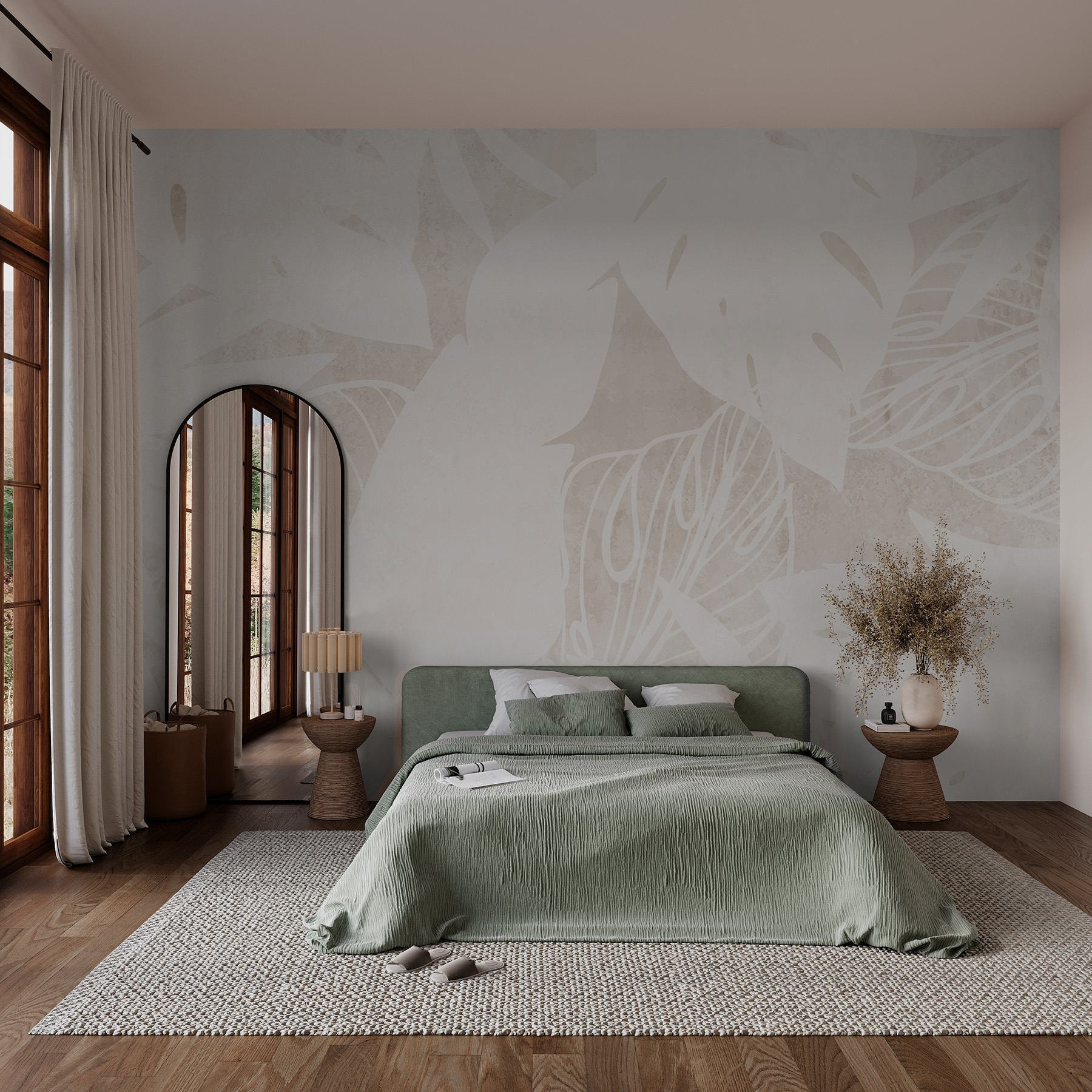 Φανταστείτε να μπαίνετε σε ένα δωμάτιο που μοιάζει με τροπικό καταφύγιο, ακόμα κι αν είναι απλώς μια ζεστή γωνιά του σπιτιού σας. Αυτή η ταπετσαρία «White Leaf Pattern» έχει μια κομψή, χαλαρωτική ατμόσφαιρα που αποπνέει ηρεμία, σαν μια παρθένα παραλία με απαλή λευκή άμμο. Τα διακριτικά σχέδια φύλλων αιωρούνται σε μια απαλή επιφάνεια, προσθέτοντας διάσταση χωρίς να κατακλύζουν τις αισθήσεις. Ιδανική ως φόντο για μια γωνιά ανάγνωσης ή για εκείνο τον περίεργο τοίχο που δεν ξέρετε τι να κάνετε. Μπορεί να βρεθείτε να ονειροπολείτε για ηλιόλουστες διακοπές ενώ πίνετε ένα φλιτζάνι τσάι. Είναι σαν να φέρνετε ένα κομμάτι ενός γαλήνιου παραδείσου στην καθημερινή σας ζωή. Ποιος δεν θα το ήθελε αυτό;