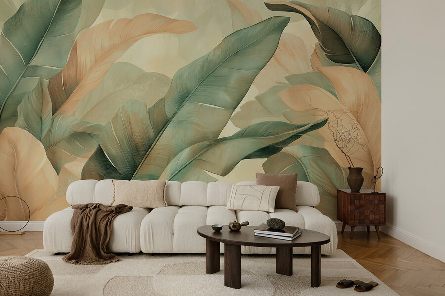 Μεταμορφώστε το χώρο σας με τη ζωντανή τοιχογραφία “Πλούσια φύλλα σε ντελικάτες αποχρώσεις”. Φανταστείτε να μπαίνετε σε μια τροπική όαση κάθε φορά που μπαίνετε στο δωμάτιο – αυτά τα πλούσια, φυλλώδη πράσινα έχουν έναν τρόπο να προσκαλούν την ύπαιθρο. Οι απαλές ροδακινί αποχρώσεις ξεπροβάλλουν, προσθέτοντας μια πινελιά ζεστασιάς που ταιριάζει σε κάθε γωνιά. Είναι σαν να κρεμάτε ένα κομμάτι της φύσης στον τοίχο σας, χωρίς την ταλαιπωρία του ποτίσματος των φυτών. Ιδανικό για να φωτίσετε ένα άνετο σαλόνι ή να δώσετε ζωή σε μια γωνιά ανάγνωσης. Φανταστείτε να πίνετε το αγαπημένο σας ποτό ενώ περιβάλλεστε από αυτή την πλούσια ατμόσφαιρα ή να φιλοξενείτε φίλους που δεν μπορούν παρά να θαυμάσουν την ομορφιά. Είναι κάτι περισσότερο από διακόσμηση, είναι μια εμπειρία που σας κάνει να νιώθετε καλά και μπορεί να σας εμπνεύσει ακόμη και ονειροπολήσεις για μακρινά μέρη.