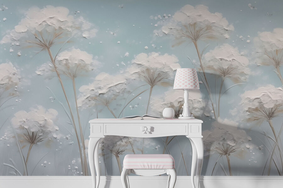 Μεταμορφώστε οποιονδήποτε τοίχο με αυτή τη μαγευτική τοιχογραφία που φέρνει στο σπίτι σας χωράφια με λουλούδια. Φανταστείτε ένα γαλήνιο μπλε φόντο πασπαλισμένο με λεπτά άνθη που λικνίζονται απαλά σε ένα ελαφρύ αεράκι. Είναι σαν να μπαίνετε σε ένα όνειρο ή να παίρνετε μια μυρωδιά από ένα φρέσκο ανοιξιάτικο πρωινό. Αυτή η τοιχογραφία προσκαλεί τη ζεστασιά και την ηρεμία, καθιστώντας την ιδανική για άνετες γωνιές ανάγνωσης ή για ζωηρά σαλόνια. Απλά φανταστείτε να πίνετε τσάι ή να μοιράζεστε το γέλιο σας σε έναν χώρο που μοιάζει με την αγκαλιά της φύσης – απαλό, φιλόξενο και ατελείωτα χαρούμενο. Ιδανικό για όσους λατρεύουν μια πινελιά ιδιοτροπίας ισορροπημένη με την κομψότητα!