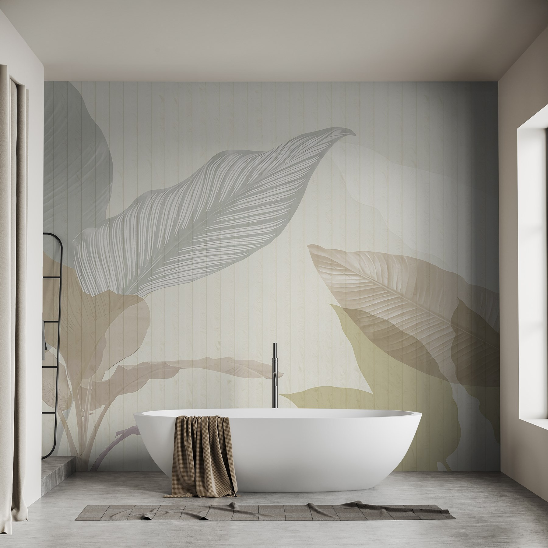 Μεταμορφώστε κάθε χώρο με αυτή τη μαγευτική τοιχογραφία, “Απαλές αποχρώσεις της ομορφιάς της φύσης”. Φανταστείτε να μπαίνετε σε μια γαλήνια τροπική απόδραση κάθε φορά που μπαίνετε στο δωμάτιο. Αυτές οι απαλές, γήινες αποχρώσεις και οι εκτυπώσεις φύλλων δημιουργούν μια ατμόσφαιρα που ψιθυρίζει χαλάρωση. Ιδανική για μια άνετη γωνιά ανάγνωσης ή ένα ήσυχο υπνοδωμάτιο, αυτή η τοιχογραφία φέρνει την ύπαιθρο μέσα, χωρίς τα κουνούπια – ναι! Φανταστείτε να πίνετε καφέ ενώ το φως του ήλιου χορεύει πάνω σε αυτά τα φύλλα, προκαλώντας μια αίσθηση ηρεμίας. Είναι σαν να έχετε ένα κομμάτι της φύσης ακριβώς στον τοίχο σας, έτοιμο να εμπνεύσει όνειρα για παραθαλάσσιες αποδράσεις και τεμπέλικα απογεύματα.