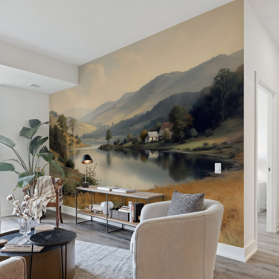 Μεταμορφώστε έναν βαρετό τοίχο σε μια γαλήνια απόδραση με αυτή την εκπληκτική τοιχογραφία μιας γαλήνιας λίμνης, ενός γοητευτικού σπιτιού και ευγενικών δέντρων. Φανταστείτε να πίνετε τον καφέ σας, αναπαυτικά στον καναπέ σας, ενώ απολαμβάνετε τις ήρεμες δονήσεις. Οι απαλές αποχρώσεις ψιθυρίζουν “χαλαρώστε” καθώς προσκαλούν την ηρεμία στο χώρο σας. Φανταστείτε ένα κυριακάτικο πρωινό, με τα πουλιά να κελαηδούν έξω, το φως να μπαίνει μέσα – είναι σαν να έχετε ένα κομμάτι της φύσης ακριβώς στο σαλόνι σας. Ιδανικό για τους λάτρεις της υπαίθρου ή για οποιονδήποτε χρειάζεται μια μίνι απόδραση στο σπίτι του. Γιατί λοιπόν να μην φέρετε ένα μικρό κομμάτι γαλήνης στους εσωτερικούς χώρους;