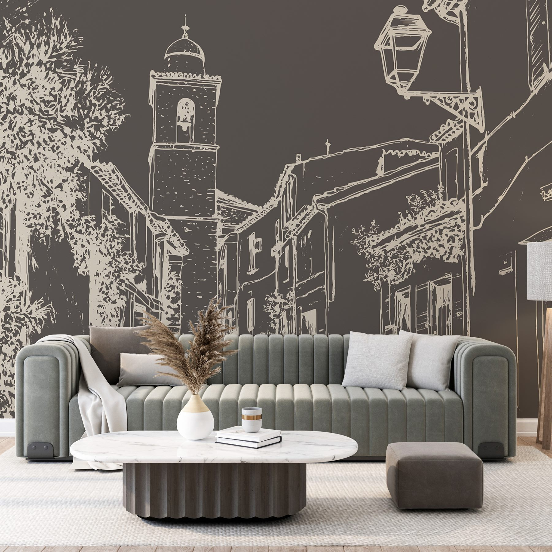 Μπείτε σε μια γοητευτική σκηνή του δρόμου με αυτή την τοιχογραφία που αποτυπώνει τη ζεστασιά της άνετης ζωής ενός χωριού. Με τα γραφικά κτίρια και ένα καμπαναριό που μοιάζει να έχει βγει κατευθείαν από παραμύθι, είναι ιδανική για να προκαλέσει ονειροπολήσεις και περιπλάνηση. Φανταστείτε να πίνετε τον καφέ σας ατενίζοντας αυτή την υπέροχη θέα, σαν να αναδύεται το άρωμα φρέσκου ψωμιού ακριβώς πίσω από την τοιχογραφία. Η απαλή γραμμική γραφή προσδίδει μια παιχνιδιάρικη πινελιά, προσκαλώντας μια αίσθηση ηρεμίας. Ιδανική για κάθε δωμάτιο, αυτή η τοιχογραφία προσθέτει χαρακτήρα και εκείνες τις υπέροχες μικρές στιγμές που κάνουν το σπίτι, λοιπόν, σπίτι. Μια πραγματική αφορμή για συζήτηση – ποιος δεν θα ήθελε να συζητήσει για τα φανταστικά του ταξίδια;
