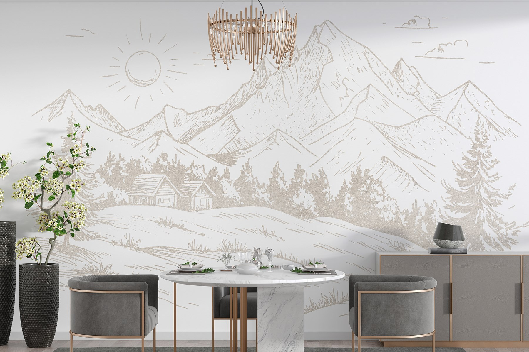 Μεταμορφώστε κάθε χώρο με αυτή τη γοητευτική τοιχογραφία που φέρνει ένα γαλήνιο τοπίο στο σπίτι σας. Φανταστείτε μεγαλοπρεπή βουνά να στέκονται ψηλά, πλαισιωμένα από καταπράσινα δέντρα και ήπιους λόφους. Είναι σαν να έχετε μια μίνι απόδραση χωρίς να σηκωθείτε από τον καναπέ! Φανταστείτε να απολαμβάνετε τον πρωινό καφέ σας ατενίζοντας αυτή τη γαλήνια θέα- ακόμη και τα πουλιά μπορεί να ζηλέψουν λίγο. Επιπλέον, οι απαλές γραμμές και οι γήινοι τόνοι προσκαλούν μια ζεστή ατμόσφαιρα. Ιδανική για μια ρουστίκ καμπίνα ή έναν κομψό μοντέρνο χώρο, αυτή η τοιχογραφία ψιθυρίζει ηρεμία και προσθέτει μια βουτιά από την ομορφιά της φύσης όπου κι αν πάει.