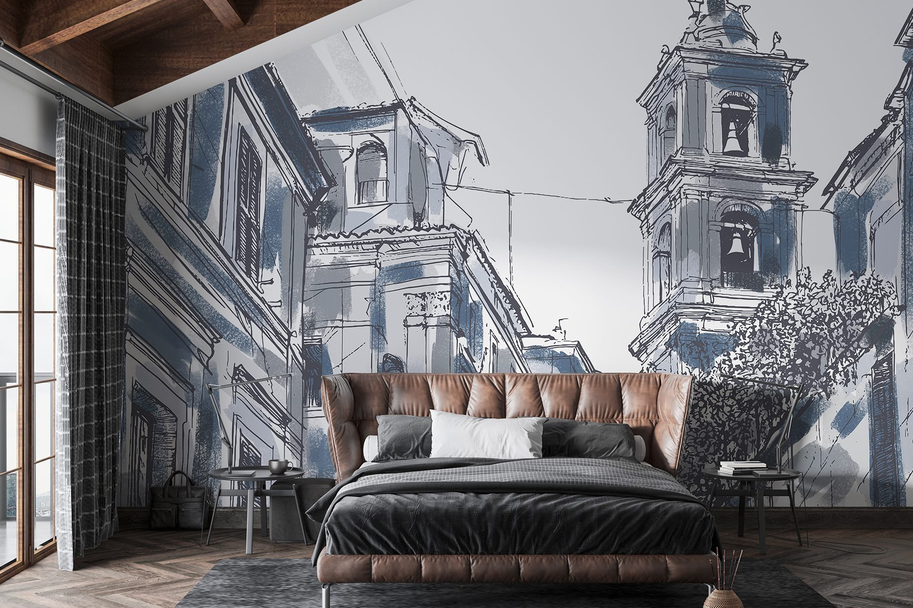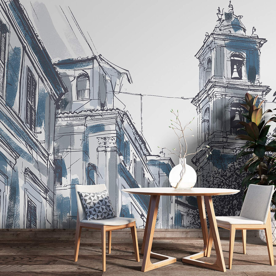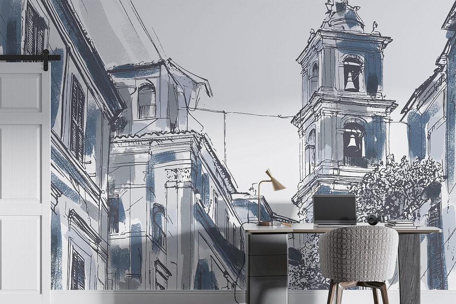 Παρουσιάζουμε μια τοιχογραφία που ψιθυρίζει ιστορίες γοητείας και ιστορίας – ένα ονειρικό σχέδιο ενός κτιρίου με καμπάνες, που περιμένει να μεταμορφώσει κάθε δωμάτιο. Φανταστείτε αυτή την ομορφιά να φωτίζει το χώρο σας, φέρνοντας λίγο από αυτή τη γραφική, παλιομοδίτικη ατμόσφαιρα στους τοίχους σας. Είναι σαν να μπαίνετε σε έναν γοητευτικό ευρωπαϊκό δρόμο, όπου κάθε ματιά σας προκαλεί ένα όνειρο.