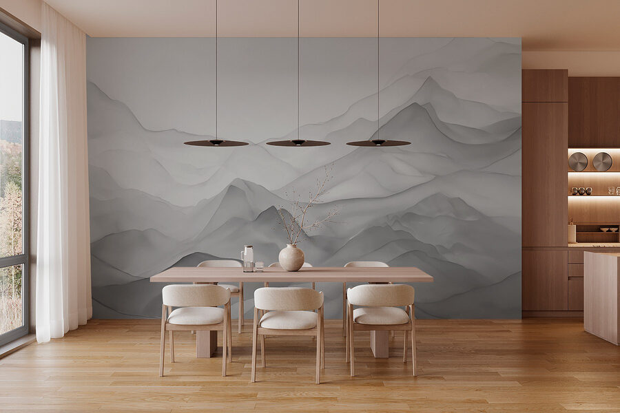 Μεταμορφώστε το χώρο σας με αυτή την τοιχογραφία που ψιθυρίζει κομψότητα και περιπέτεια. Φανταστείτε να μπαίνετε σε ένα δωμάτιο και να αισθάνεστε σαν να έχετε μπει σε μια γαλήνια οροσειρά, όπου οι γκρι και οι λευκές αποχρώσεις αναμειγνύονται απαλά. Είναι ιδανικό για να δημιουργήσετε μια χαλαρή ατμόσφαιρα, είτε πρόκειται για το καταφύγιο ενός εφήβου είτε για μια ζεστή γωνιά ανάγνωσης. Οι απαλές διαβαθμίσεις το κάνουν να μοιάζει δυναμικό αλλά και ηρεμιστικό, σαν μια ήσυχη πρωινή ομίχλη πάνω από μακρινές κορυφές. Φανταστείτε το: τη μια στιγμή κοιτάζετε τον τοίχο και την επόμενη χάνεστε σε ονειροπολήσεις για μακρινά μέρη. Απλά προσκαλεί στη χαλάρωση, έτσι δεν είναι; Ένα μικρό κομμάτι της φύσης χωρίς πεζοπορία!