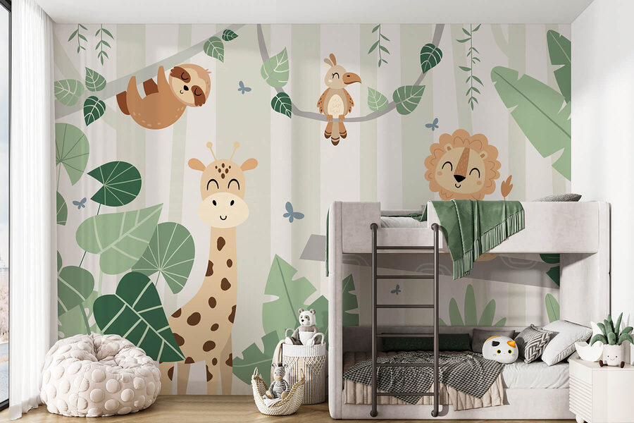 Μεταμορφώστε οποιονδήποτε χώρο με αυτή την απολαυστική τοιχογραφία ζούγκλας με ένα γοητευτικό καστ ζωικών χαρακτήρων, όπως μια χαρούμενη καμηλοπάρδαλη, έναν χαλαρό βραδύποδα και ένα παιχνιδιάρικο λιοντάρι. Είναι σαν να μπαίνετε σε έναν παιχνιδιάρικο παράδεισο κάθε φορά που μπαίνετε στο δωμάτιο. Φανταστείτε τα παιδιά να χαχανίζουν, ενώ περιβάλλονται από πλούσιο πράσινο και τους τριχωτούς φίλους τους – μπορεί ακόμη και να προσποιηθούν ότι είναι εξερευνητές σε ένα συναρπαστικό σαφάρι! Κάθε λεπτομέρεια φέρνει μια αίσθηση διασκέδασης και θαυμασμού, ιδανική για να πυροδοτήσει τη φαντασία. Αυτή η τοιχογραφία όχι μόνο φωτίζει τους τοίχους, αλλά φέρνει επίσης μια ανέμελη ατμόσφαιρα στο παιχνίδι, την ώρα του ύπνου ή οποιαδήποτε στιγμή. Ποιος δεν θα ήθελε το δικό του καταφύγιο στη ζούγκλα στο σπίτι;