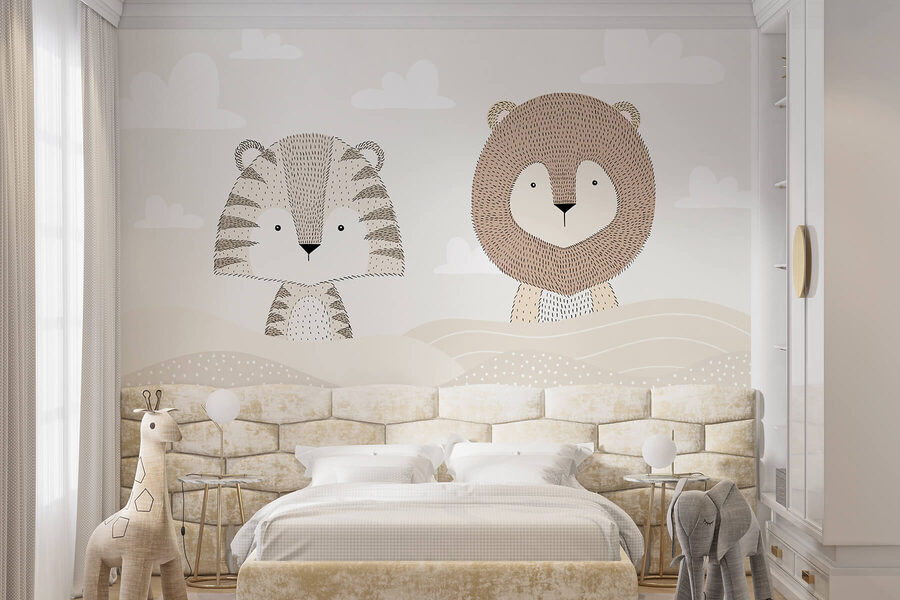 Φέρτε μια πινελιά περιπέτειας στον κόσμο κάθε μικρού παιδιού με αυτή την υπέροχη τοιχογραφία τοίχου με ένα λιοντάρι και μια τίγρη που αράζουν σε ένα γαλήνιο τοπίο της ερήμου. Είναι σαν τροπικές διακοπές στους τοίχους σας! Τα απαλά χρώματα δημιουργούν μια ήρεμη ατμόσφαιρα, ιδανική για όνειρα την ημέρα ή για νυχτερινές αγκαλιές. Φανταστείτε ιστορίες για ύπνο με αποδράσεις στη ζούγκλα κάτω από αυτά τα γοητευτικά ζωάκια – τα μικρά παιδιά θα αποκοιμηθούν με σκέψεις για παιχνιδιάρικες περιπέτειες. Ένας ήρωας και ένας φίλος, αυτή η τοιχογραφία κάνει κάθε δωμάτιο να αισθάνεται λίγο πιο μαγικό. Ιδανική για παιδικούς χώρους ή παιδικούς σταθμούς, προσθέτει τόσο διασκέδαση όσο και ζεστασιά. Επιπλέον, ποιος δεν λατρεύει ένα ζευγάρι αξιολάτρευτων ζωικών φίλων;