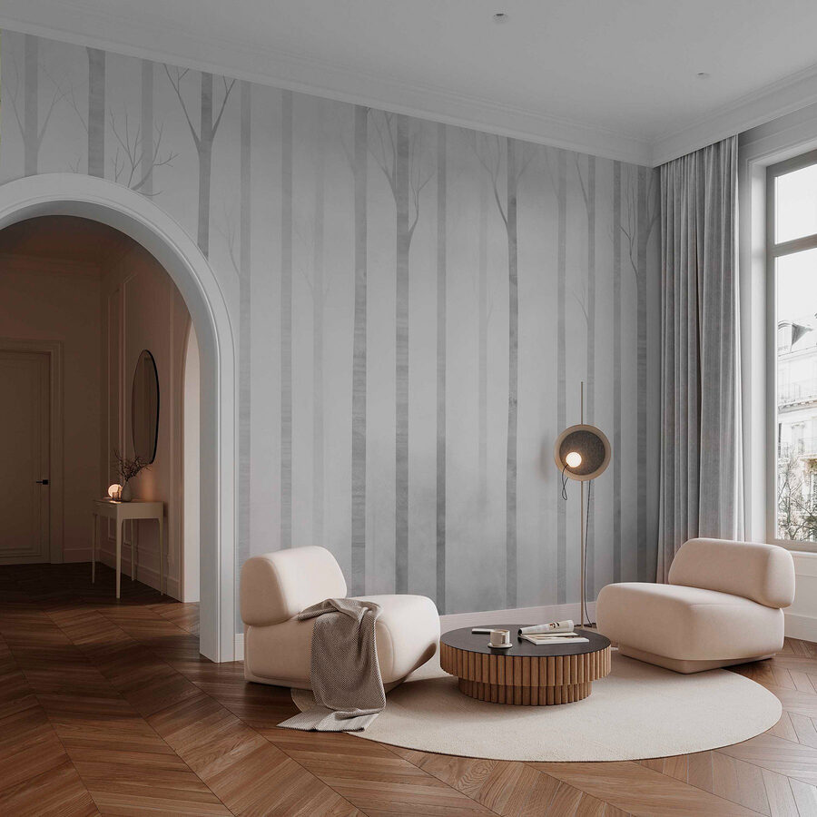 Φανταστείτε να μπαίνετε σε ένα ονειρικό δάσος, τυλιγμένο σε μια απαλή κουβέρτα ομίχλης. Αυτή η τοιχογραφία τοίχου, με μια γαλήνια ομάδα δέντρων που παρασύρονται στην ομίχλη, δημιουργεί μια γαλήνια ατμόσφαιρα στην οποία είναι δύσκολο να αντισταθείτε. Είναι ιδανική για να προσθέσετε μια δροσερή, εμπνευσμένη από τη φύση πινελιά σε οποιοδήποτε δωμάτιο – σαν μια άνετη απόδραση σε μια καλύβα χωρίς να φύγετε από το σπίτι. Φανταστείτε το σε μια γωνιά ανάγνωσης, όπου κάθεται ένα αχνιστό φλιτζάνι τσάι, ή πίσω από έναν άνετο καναπέ, προσκαλώντας τεμπέλικα απογεύματα. Οι διακριτικοί γκρίζοι τόνοι διατηρούν τα πράγματα ήρεμα, ενώ τα δέντρα ψιθυρίζουν ιστορίες περιπλάνησης στο δάσος. Φέρτε ένα κομμάτι της φύσης στους εσωτερικούς χώρους, και αφήστε κάθε ματιά να σας μεταφέρει λίγη γαλήνη και θαυμασμό.