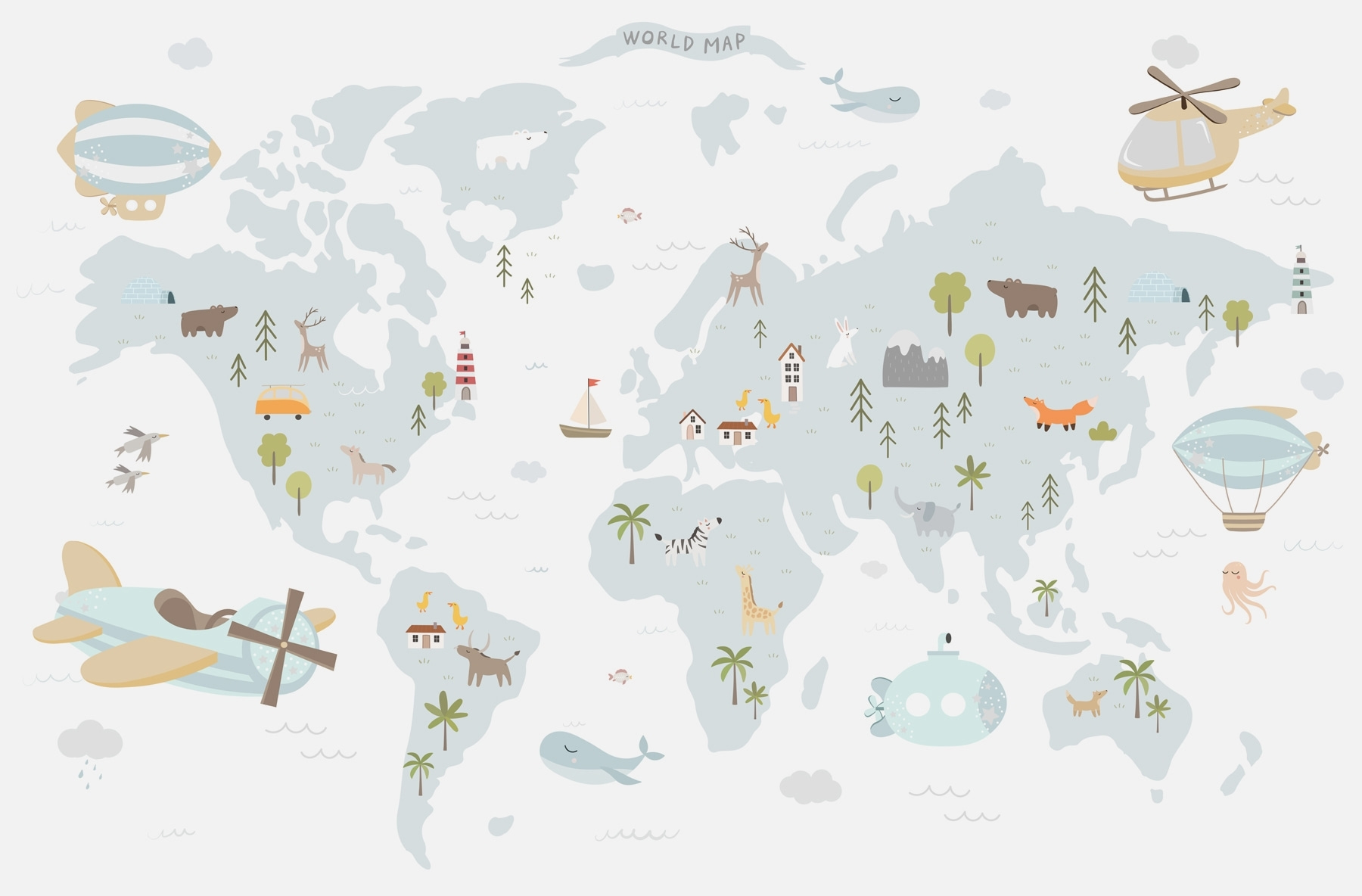 Μεταμορφώστε το χώρο σας με την ιδιόρρυθμη γοητεία του Ταπετσαρίες Map of the World. Αυτή η απολαυστική τοιχογραφία σας ταξιδεύει σε όλες τις ηπείρους χωρίς να χρειάζεστε ποτέ διαβατήριο. Φανταστείτε τα πρόσωπα των παιδιών να φωτίζονται καθώς εντοπίζουν παιχνιδιάρικα ζώα, ιστιοφόρα, ακόμα και αερόστατα διάσπαρτα σε όλο τον κόσμο. Είναι σαν μια μίνι περιπέτεια στον τοίχο σας! Αυτή η τοιχογραφία δεν είναι απλώς όμορφη – είναι έναυσμα για συζήτηση, προκαλώντας όνειρα για μακρινά μέρη. Ιδανική για το δωμάτιο ενός παιδιού ή για έναν ζωντανό χώρο παιχνιδιού, είναι βέβαιο ότι θα χαρίσει χαμόγελα και ίσως ακόμη και λίγη έμπνευση για μελλοντικούς εξερευνητές. Ποιος δεν θα ήθελε να κάνει μεγάλα όνειρα με ένα τόσο χαρούμενο σκηνικό;