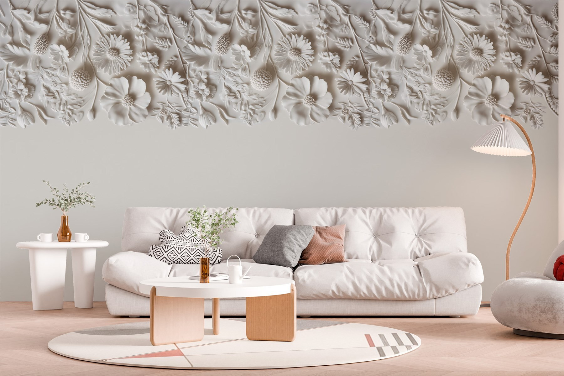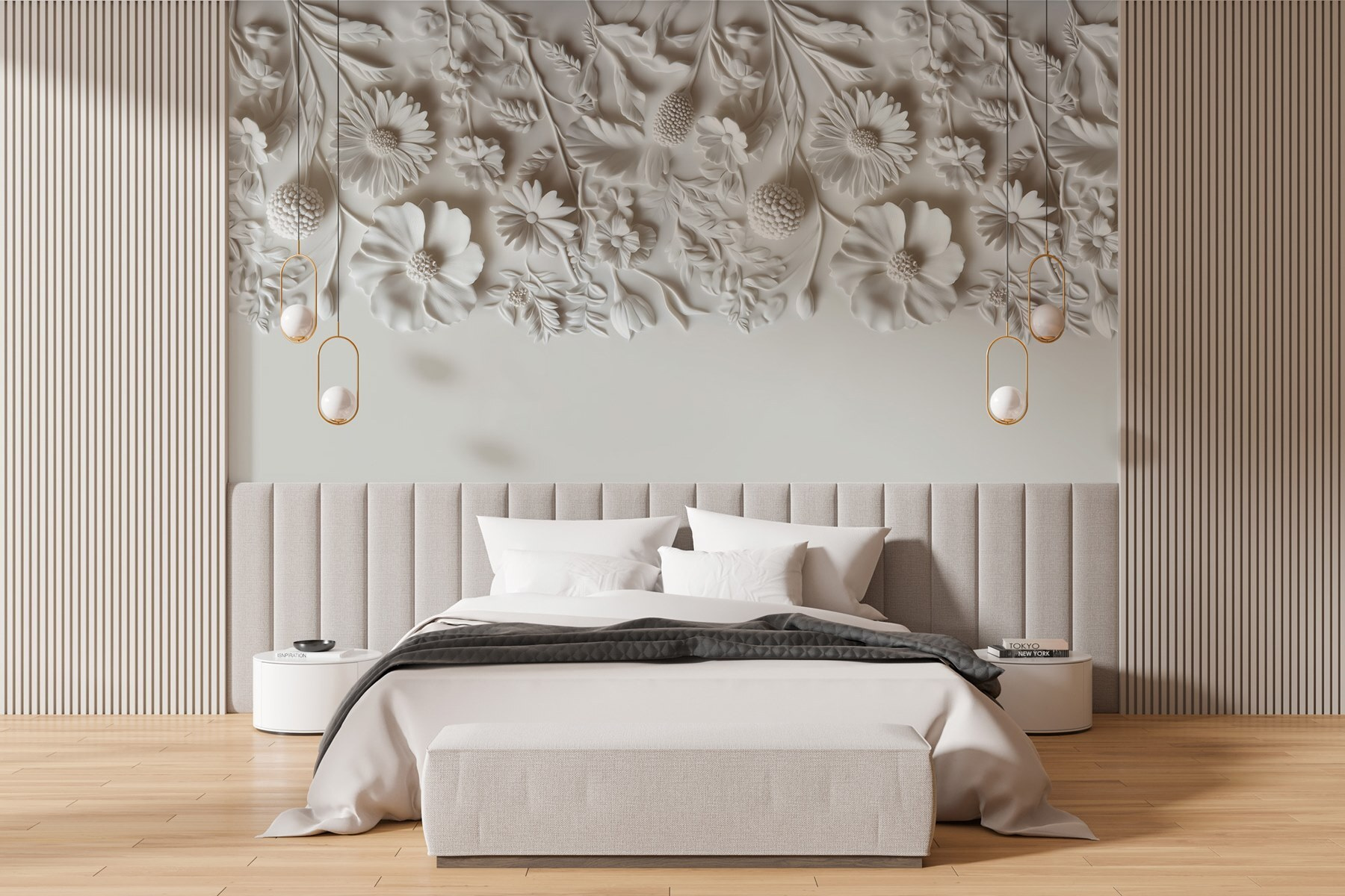 Μεταμορφώστε οποιονδήποτε χώρο σε έναν γαλήνιο κήπο με αυτή την αλλόκοτη λευκή φλοράλ τοιχογραφία. Φανταστείτε να μπαίνετε στο δωμάτιό σας και να αισθάνεστε ότι περιβάλλεστε από απαλά ανθισμένα λουλούδια, το καθένα από τα οποία διηγείται μια μικρή ιστορία της άνοιξης. Τα λεπτά μοτίβα δίνουν ζωή στους τοίχους, προσκαλώντας ζεστασιά και ηρεμία – ιδανικά για εκείνες τις άνετες νύχτες μέσα στο σπίτι.