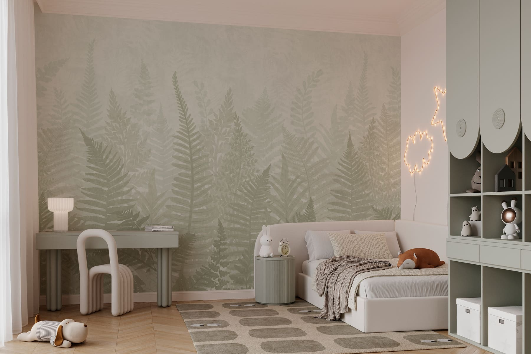 Φανταστείτε να μπαίνετε σε ένα γαλήνιο δάσος, όπου η πρωινή ομίχλη χορεύει γύρω από πλούσια φύλλα φτέρης. Αυτή η τοιχογραφία αποτυπώνει τέλεια αυτή την ονειρική ατμόσφαιρα, μετατρέποντας κάθε τοίχο σε μια ήρεμη απόδραση. Τα διακριτικά πράσινα χρώματα συνδυάζονται άψογα με τα απαλά, ομιχλώδη στρώματα, προσκαλώντας μια αίσθηση ηρεμίας στο χώρο σας. Είναι σαν να φέρνετε ένα κομμάτι της φύσης μέσα στο σπίτι, χωρίς να χρειάζεστε πράσινο αντίχειρα! Φανταστείτε άνετα βράδια που περνάτε πίνοντας τσάι, περιτριγυρισμένοι από αυτό το γαλήνιο τοπίο. Είτε πρόκειται για ένα σαλόνι είτε για μια ζεστή γωνιά ανάγνωσης, είναι βέβαιο ότι θα προκαλέσει χαμόγελα και λίγη ονειροπόληση. Ποιος δεν θα ήθελε να χαλαρώσει σε ένα μικρό κομμάτι του παραδείσου;