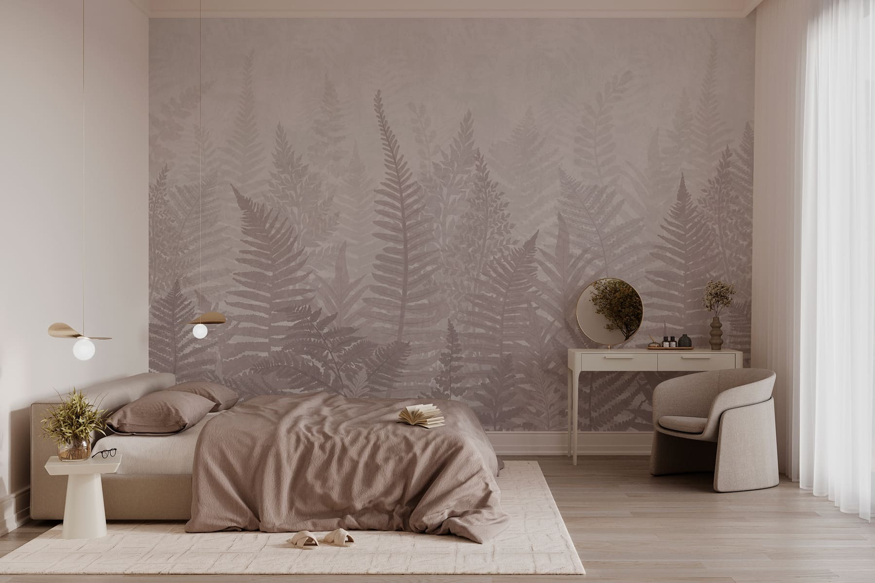 Μεταμορφώστε οποιοδήποτε δωμάτιο σε μια γαλήνια απόδραση με αυτή τη μαγευτική τοιχογραφία με φύλλα φτέρης που καλύπτονται από μια ονειρική ομίχλη. Είναι σαν να φέρνετε ένα κομμάτι της φύσης μέσα στο σπίτι χωρίς την περιστασιακή αράχνη ή το ενοχλητικό έντομο. Φανταστείτε να ξυπνάτε με απαλά πράσινα χρώματα που αναμειγνύονται διακριτικά με απαλά γκρι – είναι ηρεμιστικό, αναζωογονητικό και λίγο μαγικό. Αυτό το σχέδιο προσκαλεί μια ειρηνική ατμόσφαιρα, ιδανική για άνετες γωνιές ή ζωντανούς χώρους διαβίωσης. Είναι σαν να ψιθυρίζει στον έξω κόσμο ότι δεν πειράζει να επιβραδύνετε και να αναπνέετε. Οι λάτρεις της φύσης θα νιώσουν σαν στο σπίτι τους, τυλιγμένοι στην ουσία της υπαίθρου.