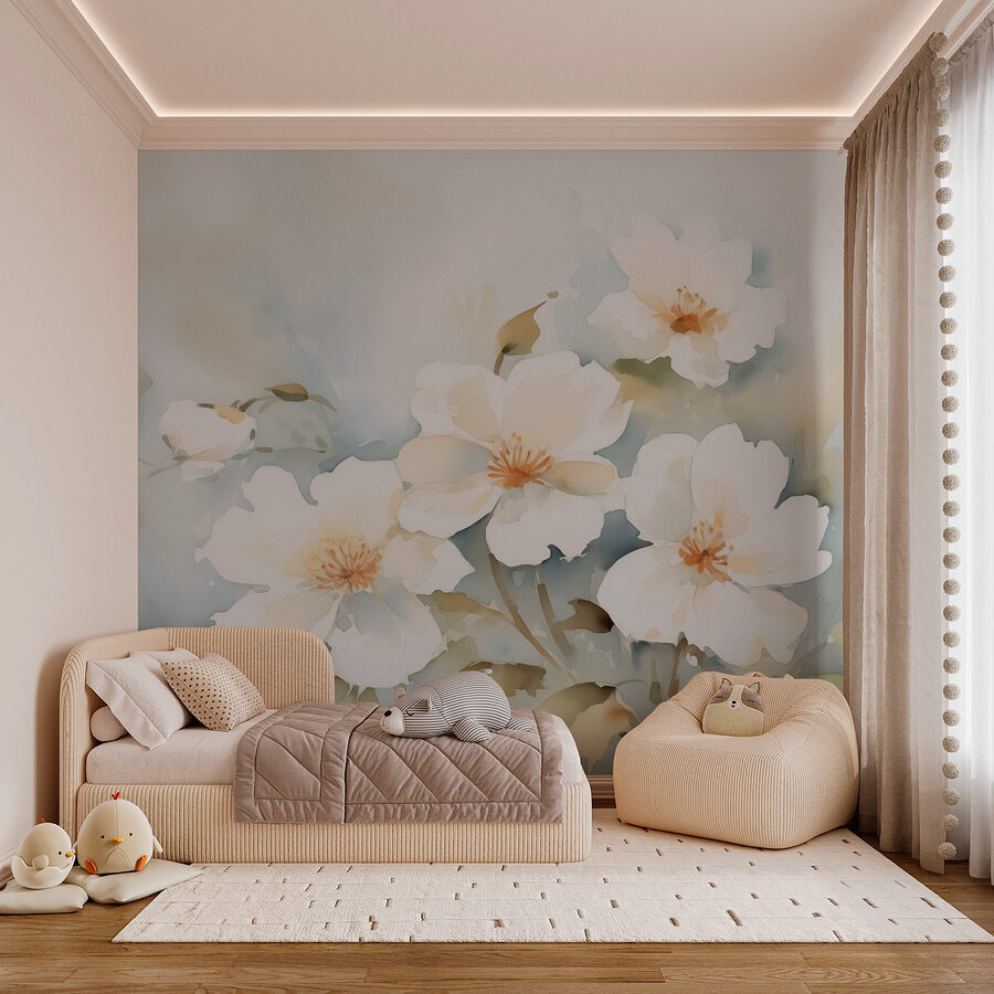 Μεταμορφώστε το χώρο σας με αυτή την εκπληκτική τοιχογραφία τοίχου, με λεπτά λευκά λουλούδια που μοιάζουν με ανάσα δροσιάς. Φανταστείτε να μπαίνετε σε ένα δωμάτιο όπου αυτά τα απαλά άνθη ζωγραφίζουν μια γαλήνια εικόνα, ψιθυρίζοντας ήρεμες δονήσεις. Κάθε πέταλο μοιάζει να χορεύει στο φως, φέρνοντας ένα άγγιγμα φύσης στους εσωτερικούς χώρους. Είτε πρόκειται για μια ζεστή γωνιά είτε για ένα ζωντανό σαλόνι, αυτή η τοιχογραφία προσθέτει μια απαλή κομψότητα που κάνει αίσθηση χωρίς να ζητάει την προσοχή. Φανταστείτε να πίνετε τσάι, περιτριγυρισμένοι από την ομορφιά των λουλουδιών και να λιώνετε τις ανησυχίες σας. Ιδανικό για όσους εκτιμούν την τέχνη που εμπνέει ηρεμία.