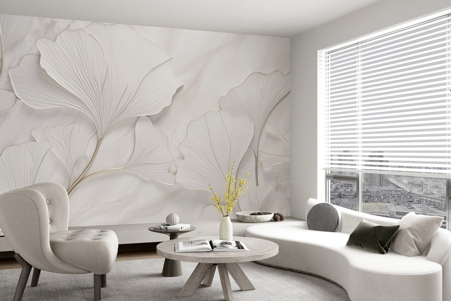 Μεταμορφώστε το χώρο σας με τη γαλήνια γοητεία του “Soft Petals on a Serene Background”. Φανταστείτε να μπαίνετε σε ένα δωμάτιο όπου τα λεπτεπίλεπτα φύλλα χορεύουν απαλά στους τοίχους, δημιουργώντας μια χαλαρωτική ατμόσφαιρα που ψιθυρίζει χαλάρωση. Αυτή η τοιχογραφία είναι σαν μια απαλή αγκαλιά για το σπίτι σας, ιδανική για ένα άνετο σαλόνι ή ένα γαλήνιο υπνοδωμάτιο. Φέρνει ένα άγγιγμα της φύσης σε εσωτερικούς χώρους – ιδανικό για εκείνες τις μέρες που ο καθαρός αέρας μοιάζει να είναι χιλιόμετρα μακριά. Γιατί, λοιπόν, να μην διοχετεύσετε αυτή την πλούσια, ήρεμη αίσθηση κήπου; Ανακινήστε το παιχνίδι της διακόσμησής σας και αφήστε τους τοίχους σας να μιλήσουν!