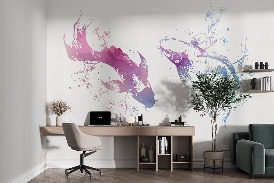 Μεταμορφώστε το χώρο σας με αυτή τη μαγευτική τοιχογραφία τοίχου με δύο κομψά ψάρια που κολυμπούν ανάμεσα σε νερομπογιές. Είναι σαν να φέρνετε ένα κομμάτι της θάλασσας στο σπίτι σας, χωρίς την άμμο στα παπούτσια σας. Οι απαλές αποχρώσεις χορεύουν στην τοιχογραφία, προκαλώντας μια αίσθηση ηρεμίας που μπορεί εύκολα να φωτίσει οποιοδήποτε δωμάτιο. Φανταστείτε να κάθεστε σε μια ζεστή γωνιά, πίνοντας τσάι, ενώ αυτά τα χαριτωμένα ψάρια μοιάζουν να γλιστρούν δίπλα σας – ίσως και να ξεχάσετε ότι βρίσκεστε σε εσωτερικό χώρο. Είναι μια γοητευτική πινελιά που ψιθυρίζει εκλέπτυνση και γαλήνη, ιδανική για τη δημιουργία μιας ειρηνικής ατμόσφαιρας. Μην εκπλαγείτε αν αρχίσετε να συζητάτε με τα ψάρια- ίσως έχουν να σας πουν ιστορίες!