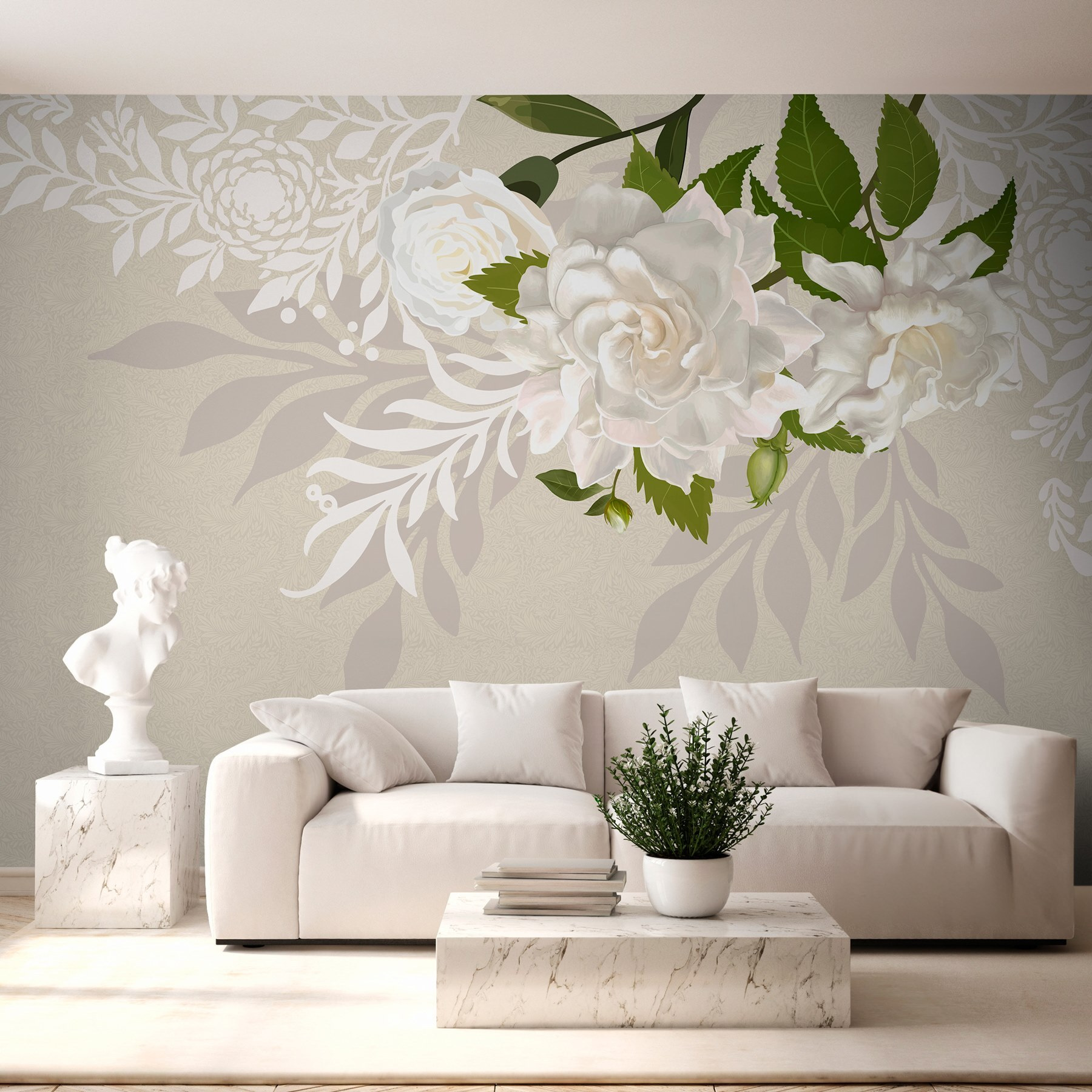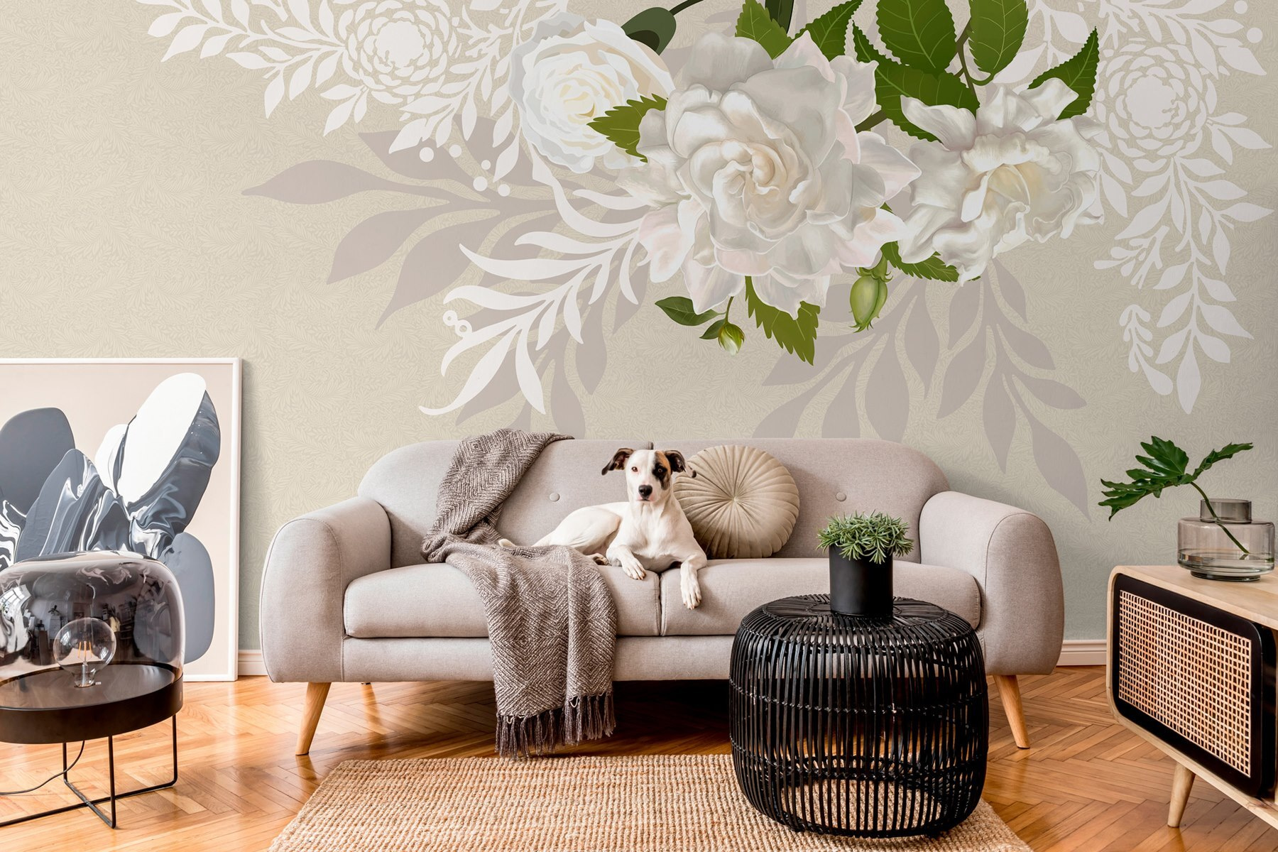 Μεταμορφώστε το χώρο σας με μια απολαυστική βουτιά της φύσης μέσω αυτής της “Τοιχογραφίας Λευκά λουλούδια με πράσινα φύλλα”. Φανταστείτε να μπαίνετε σε ένα δωμάτιο όπου απαλά λευκά άνθη και πλούσια πράσινα φύλλα σας υποδέχονται σαν παλιός φίλος. Τα απαλά χρώματα χορεύουν στον τοίχο, προσφέροντας ένα γαλήνιο καταφύγιο από τη φασαρία της ημέρας. Είτε διακοσμείτε ένα άνετο σαλόνι είτε ένα γαλήνιο υπνοδωμάτιο, αυτή η τοιχογραφία προσθέτει μια πινελιά κομψότητας και ζεστασιάς. Είναι σαν να φέρνετε έναν μυστικό κήπο μέσα στο σπίτι. Επιπλέον, είναι ένα εξαιρετικό στοιχείο για συζήτηση – ποιος δεν θα ήθελε να συνομιλήσει για λουλούδια; Αγκαλιάστε ένα μικρό κομμάτι της φύσης στο σπίτι σας!