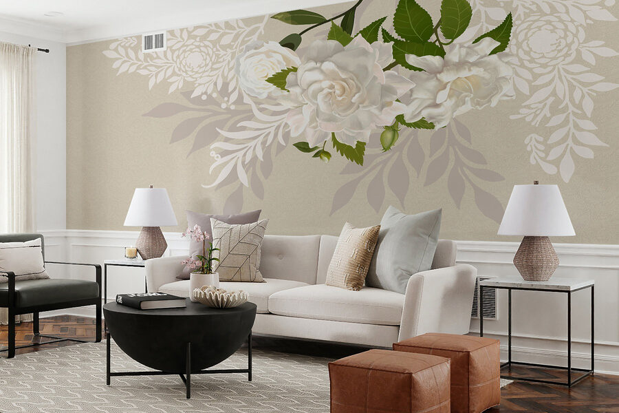 Μεταμορφώστε το χώρο σας με μια απολαυστική βουτιά της φύσης μέσω αυτής της “Τοιχογραφίας Λευκά λουλούδια με πράσινα φύλλα”. Φανταστείτε να μπαίνετε σε ένα δωμάτιο όπου απαλά λευκά άνθη και πλούσια πράσινα φύλλα σας υποδέχονται σαν παλιός φίλος. Τα απαλά χρώματα χορεύουν στον τοίχο, προσφέροντας ένα γαλήνιο καταφύγιο από τη φασαρία της ημέρας. Είτε διακοσμείτε ένα άνετο σαλόνι είτε ένα γαλήνιο υπνοδωμάτιο, αυτή η τοιχογραφία προσθέτει μια πινελιά κομψότητας και ζεστασιάς. Είναι σαν να φέρνετε έναν μυστικό κήπο μέσα στο σπίτι. Επιπλέον, είναι ένα εξαιρετικό στοιχείο για συζήτηση – ποιος δεν θα ήθελε να συνομιλήσει για λουλούδια; Αγκαλιάστε ένα μικρό κομμάτι της φύσης στο σπίτι σας!