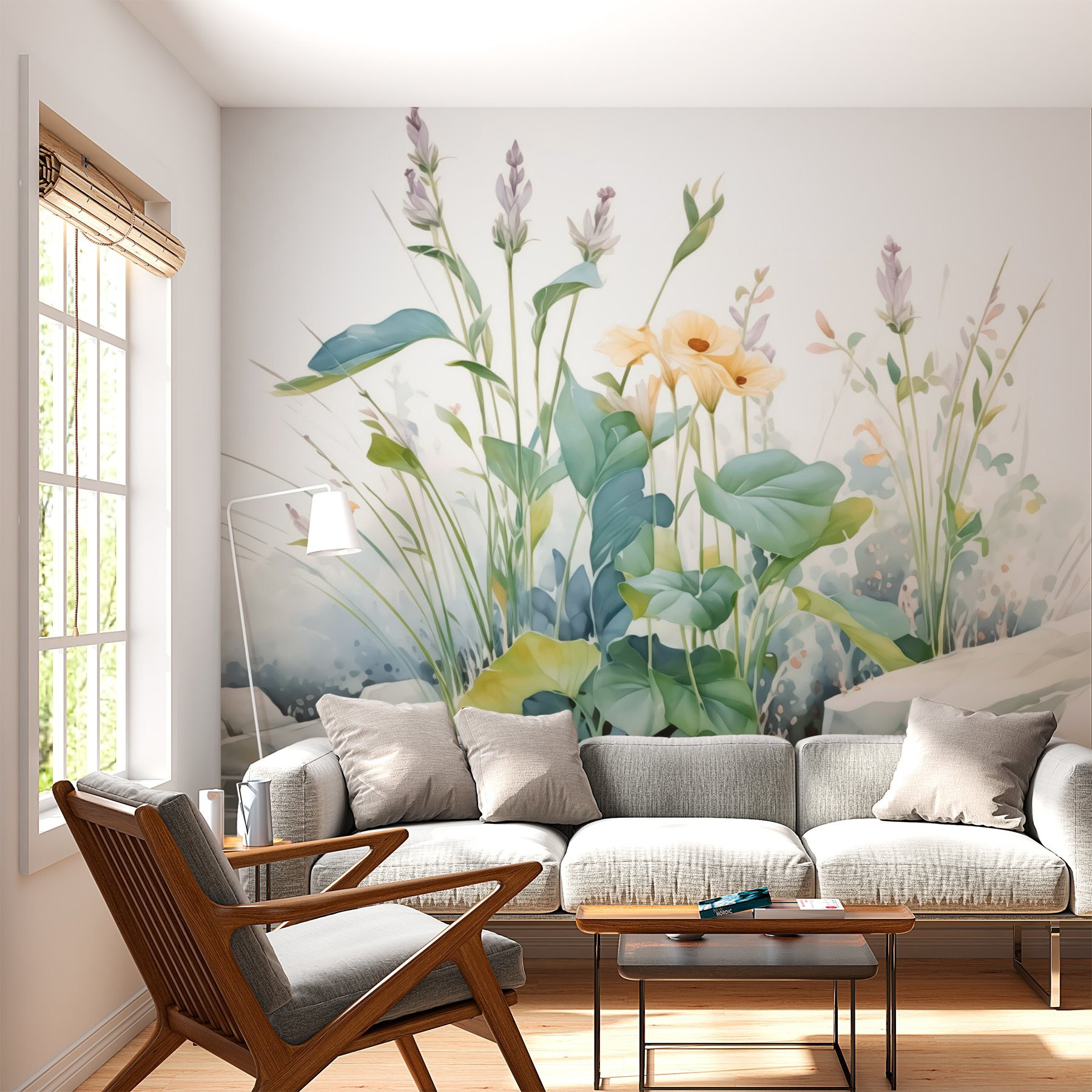Μεταμορφώστε οποιονδήποτε χώρο με αυτή τη “Τοιχογραφία τοίχου με λουλούδια και φυτά”. Φανταστείτε να μπαίνετε σε έναν γαλήνιο κήπο χωρίς να βγαίνετε από το σπίτι σας. Αυτά τα απαλά πέταλα και τα πλούσια χόρτα απλά σας προσκαλούν μέσα, έτσι δεν είναι; Είναι σαν την αγκαλιά της φύσης μετά από μια κουραστική μέρα. Φανταστείτε αυτή την ομορφιά να φωτίζει ένα σαλόνι ή να προσθέτει λίγη γοητεία σε μια ζεστή γωνιά ανάγνωσης – ιδανική για να ονειροπολήσετε ή να χαθείτε σε ένα βιβλίο. Τα απαλά χρώματα ρέουν μαζί σαν ένα ήρεμο αεράκι, δημιουργώντας μια χαλαρωτική ατμόσφαιρα. Ποιος θα μπορούσε να φανταστεί ότι μια τοιχογραφία θα μπορούσε να μετατρέψει έναν τοίχο σε μια γραφική απόδραση;