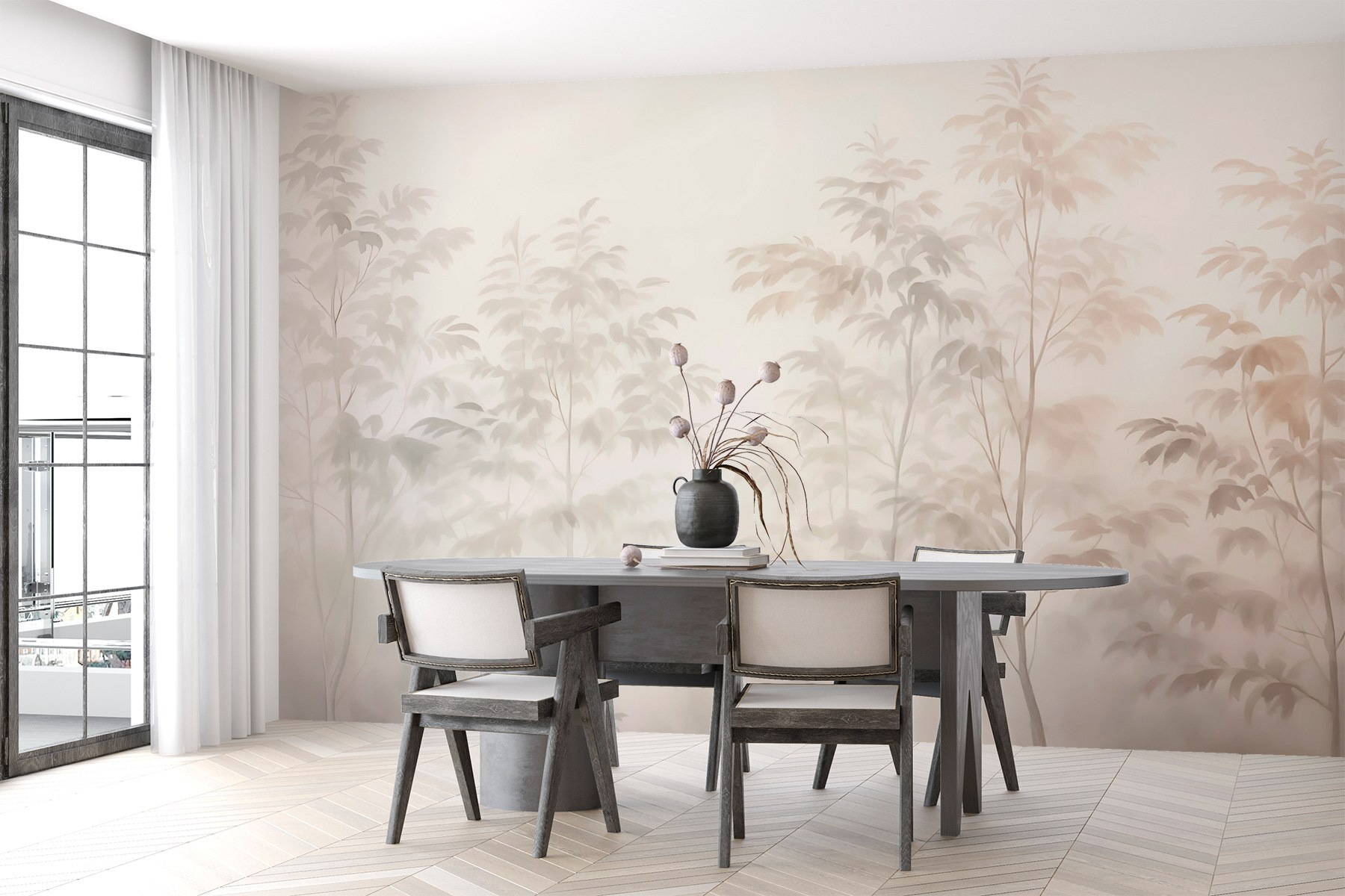 Μεταμορφώστε ένα δωμάτιο σε μια ονειρική απόδραση με τις τοιχογραφίες Δέντρα στην ομίχλη. Φανταστείτε να ξυπνάτε σε μια ειρηνική δασική σκηνή, όπου οι απαλές σιλουέτες των δέντρων σβήνουν απαλά σε μια μυστηριώδη ομίχλη. Είναι σαν να έχετε ένα κομμάτι της φύσης ακριβώς στους τοίχους σας, προσκαλώντας ήρεμες δονήσεις και ίσως ακόμη και ένα φλιτζάνι καφέ ή τσάι στο χέρι. Ιδανικό για εκείνες τις ήσυχες στιγμές που απλά θέλετε να αναπνεύσετε. Είτε πρόκειται για μια ζεστή γωνιά ανάγνωσης είτε για ένα γαλήνιο υπνοδωμάτιο, αυτή η τοιχογραφία προσθέτει έναν ψίθυρο ηρεμίας. Είναι σαν ο τοίχος σας να αποφάσισε να κάνει μια βόλτα στην ομίχλη – σε ποιον δεν θα άρεσε αυτό;