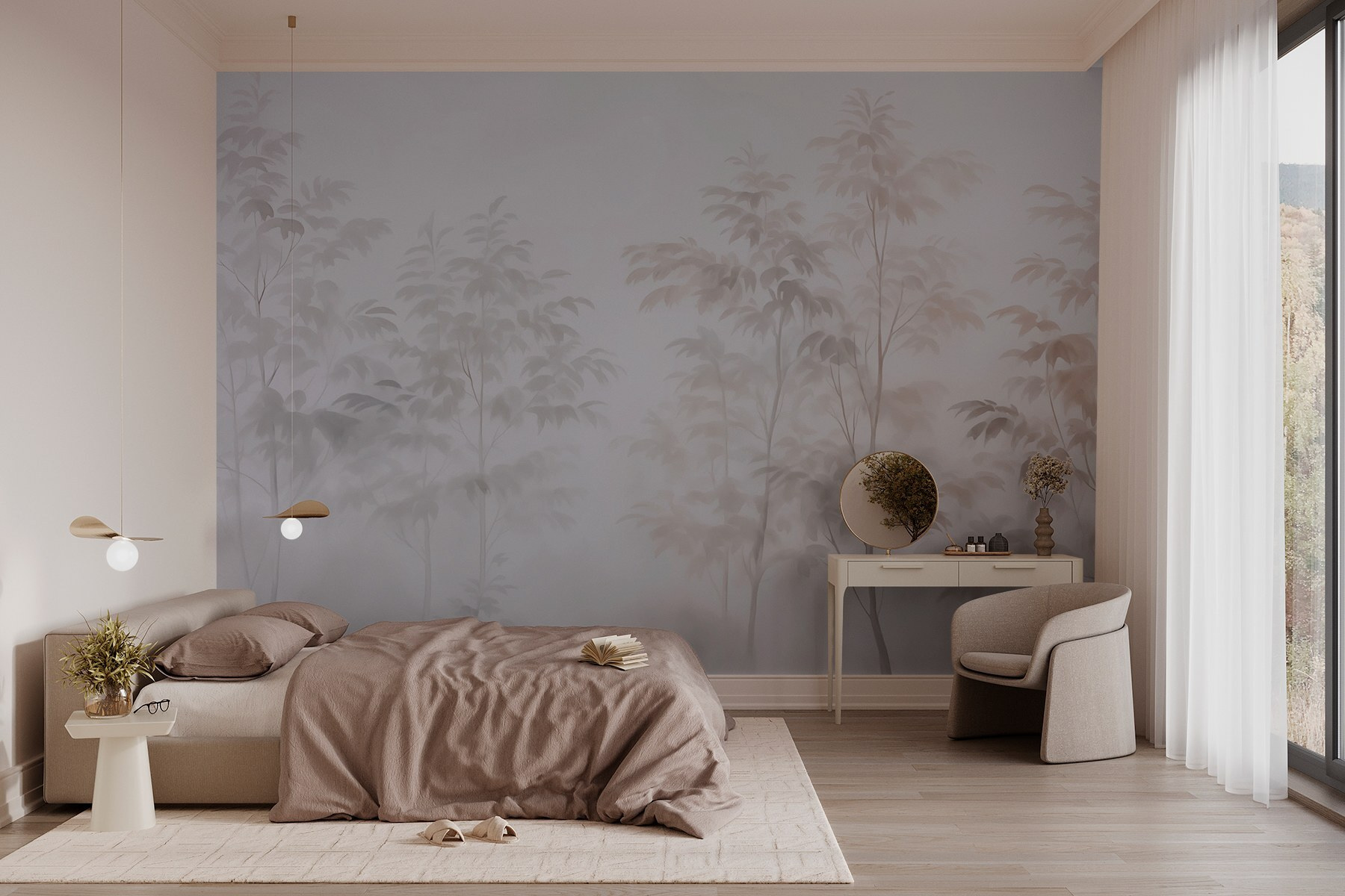 Μεταμορφώστε το χώρο σας με το “Trees in the Fog”, όπου αιθέριες σιλουέτες δέντρων συγχωνεύονται με χάρη με την απαλή ομίχλη. Είναι σαν να μπαίνετε σε ένα γαλήνιο δάσος χωρίς να βγαίνετε από το σπίτι σας. Φανταστείτε να απολαμβάνετε τον καφέ σας ατενίζοντας αυτό το απαλό σκηνικό – είναι ηρεμιστικό, σχεδόν διαλογιστικό. Οι υποτονικοί τόνοι δημιουργούν ένα καταπραϋντικό σκηνικό, ιδανικό για σαλόνια ή άνετες γωνιές. Οι φίλοι μπορεί να πουν ότι μοιάζει με ένα μυστηριώδες όνειρο, ένα μυστικό δάσος που κρύβεται μόλις έναν τοίχο μακριά! Φέρτε ένα κομμάτι της φύσης στους εσωτερικούς χώρους και νιώστε τις ανησυχίες σας να σβήνουν στην ομίχλη. Απλά προσθέστε άνετα μαξιλάρια και ίσως ένα καλό βιβλίο.