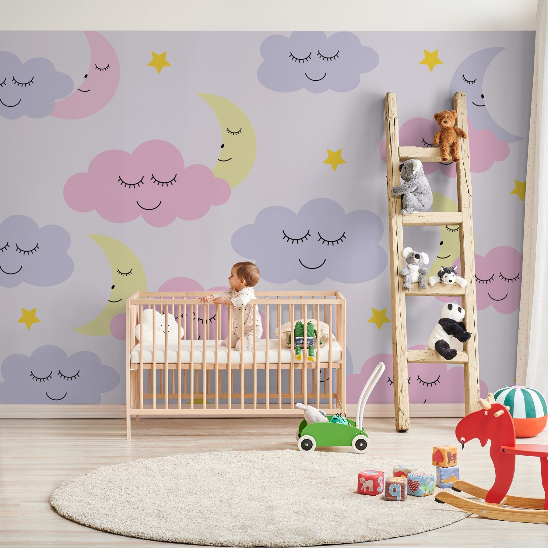 Μεταμορφώστε το χώρο κάθε μικρού παιδιού σε ένα ονειρικό καταφύγιο με αυτή την αξιολάτρευτη τοιχογραφία με χαρούμενα σύννεφα, παιχνιδιάρικα αστέρια και φεγγάρια που κοιμούνται. Είναι σαν ο νυχτερινός ουρανός να απέκτησε μια χαρούμενη ανανέωση! Φανταστείτε τα χαμόγελα κατά τη διάρκεια των παραμυθιών, καθώς τα παιδιά ξαπλώνουν κάτω από χνουδωτά ροζ και μοβ σύννεφα και ονειρεύονται γλυκά όνειρα. Κάθε στοιχείο μοιάζει με μια ζεστή αγκαλιά, προσκαλώντας τη φαντασία και το θαύμα. Ιδανικό για παιδικό δωμάτιο ή παιδικό δωμάτιο, δεν είναι απλώς διακόσμηση, είναι μια ζεστή απόδραση όπου τα όνειρα πετούν και οι περιπέτειες ξεκινούν. Ποιος δεν θα ήθελε να αποκοιμηθεί σε αυτό το υπέροχο σκηνικό;